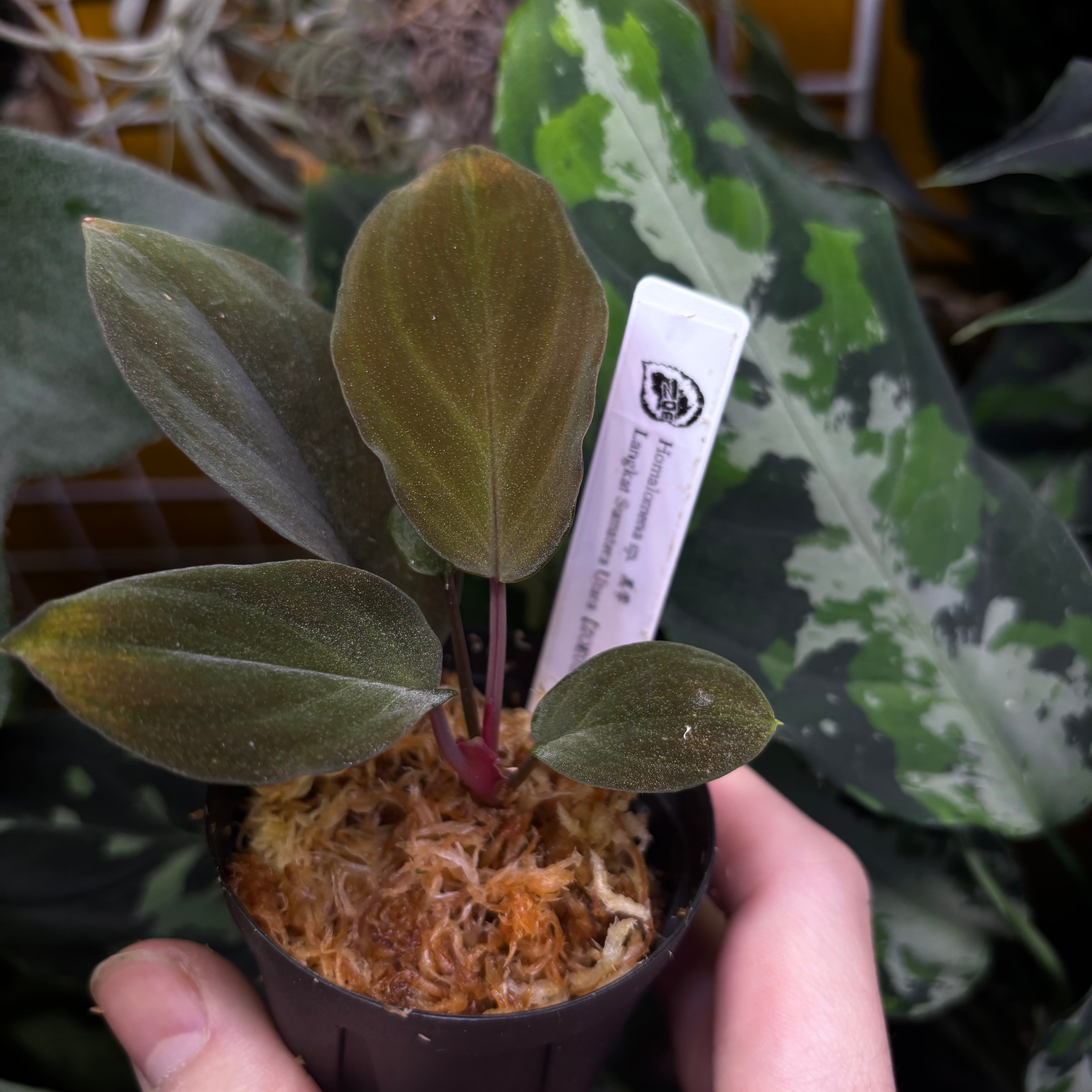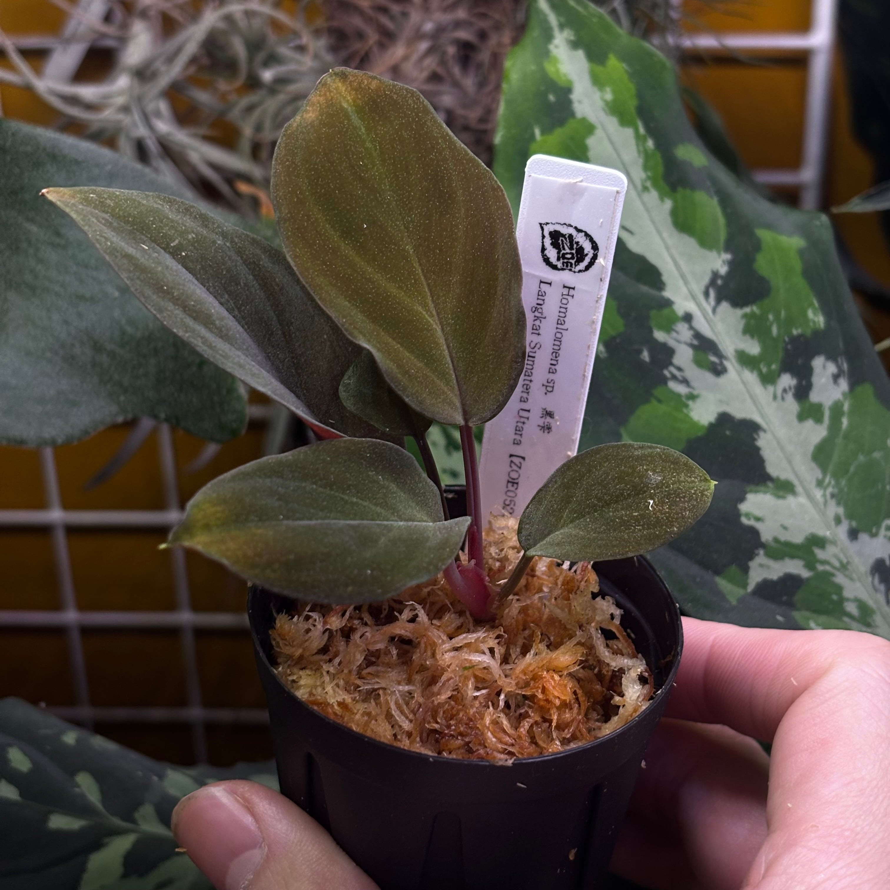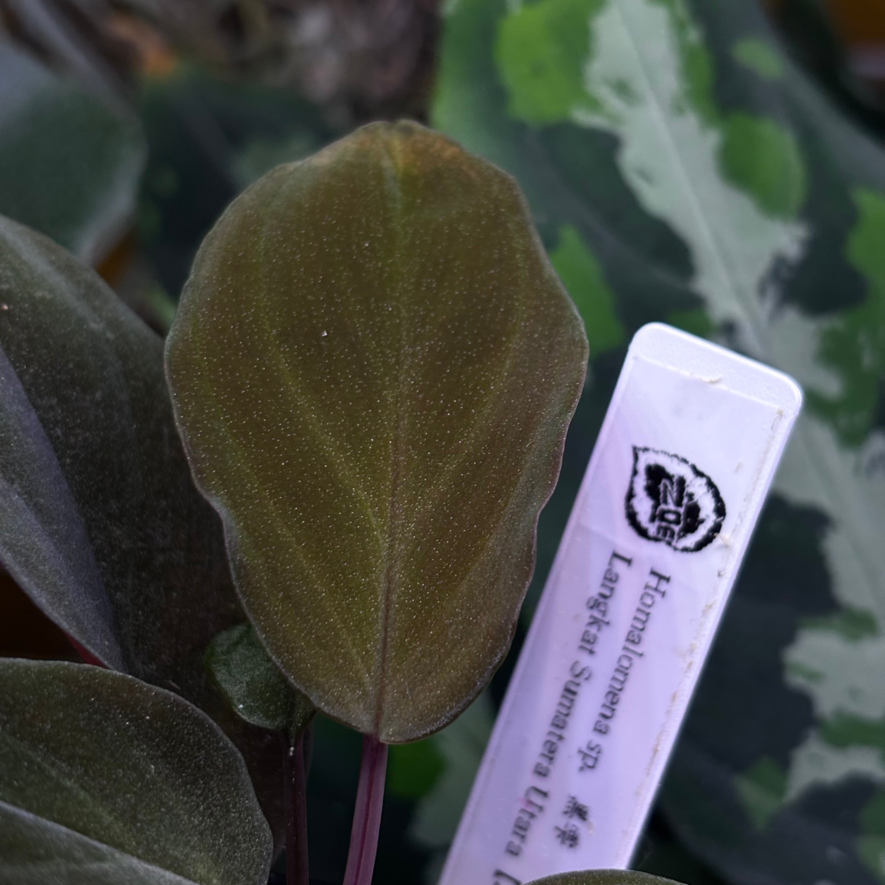 2025年5月にインドネシアから輸入したホマロメナです。最後の参考画像のように、かなり黒くなる雫型の葉が特徴のホマロメナです。