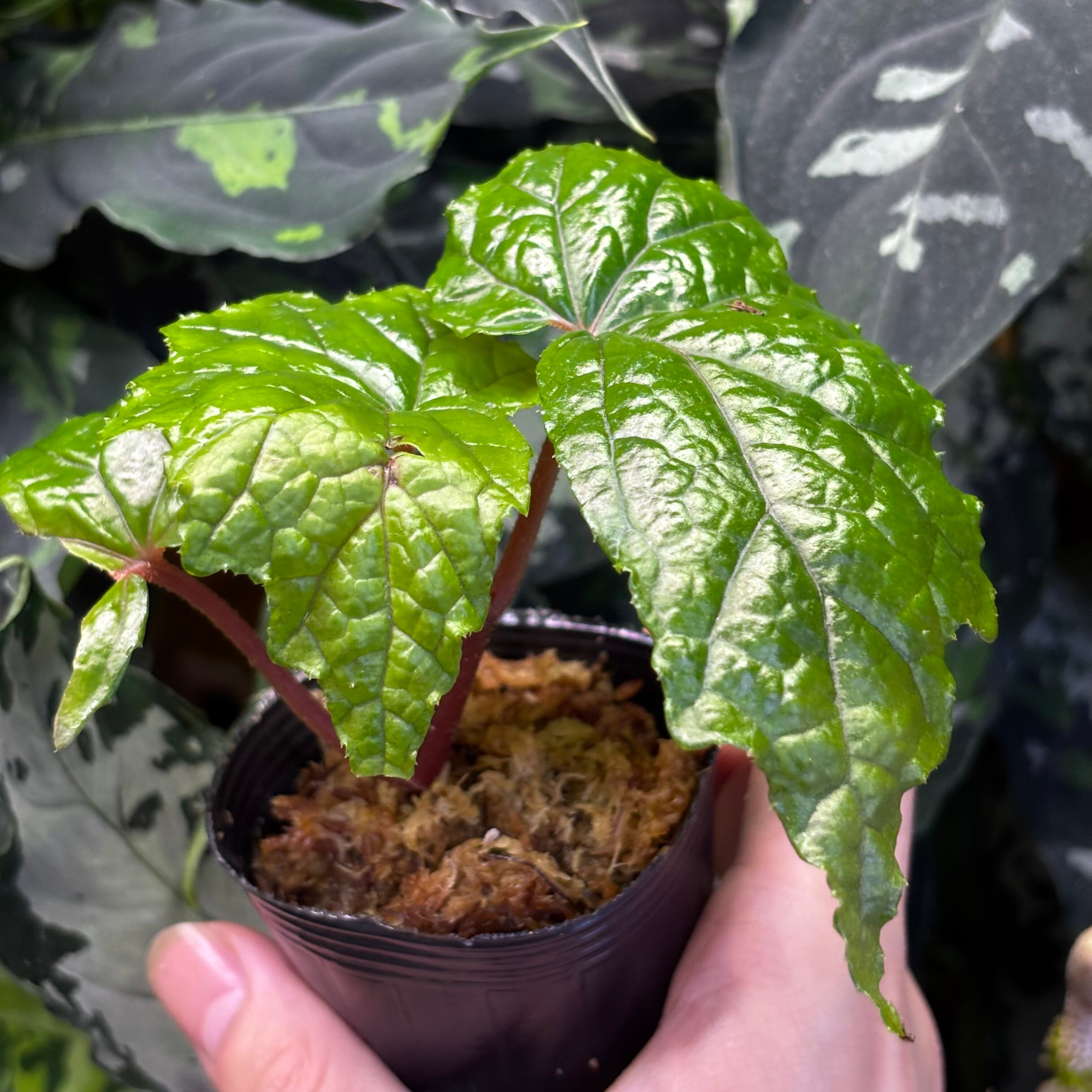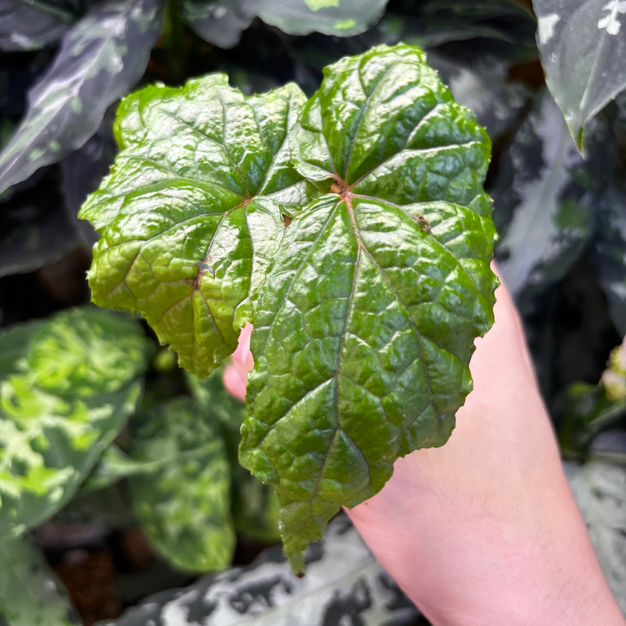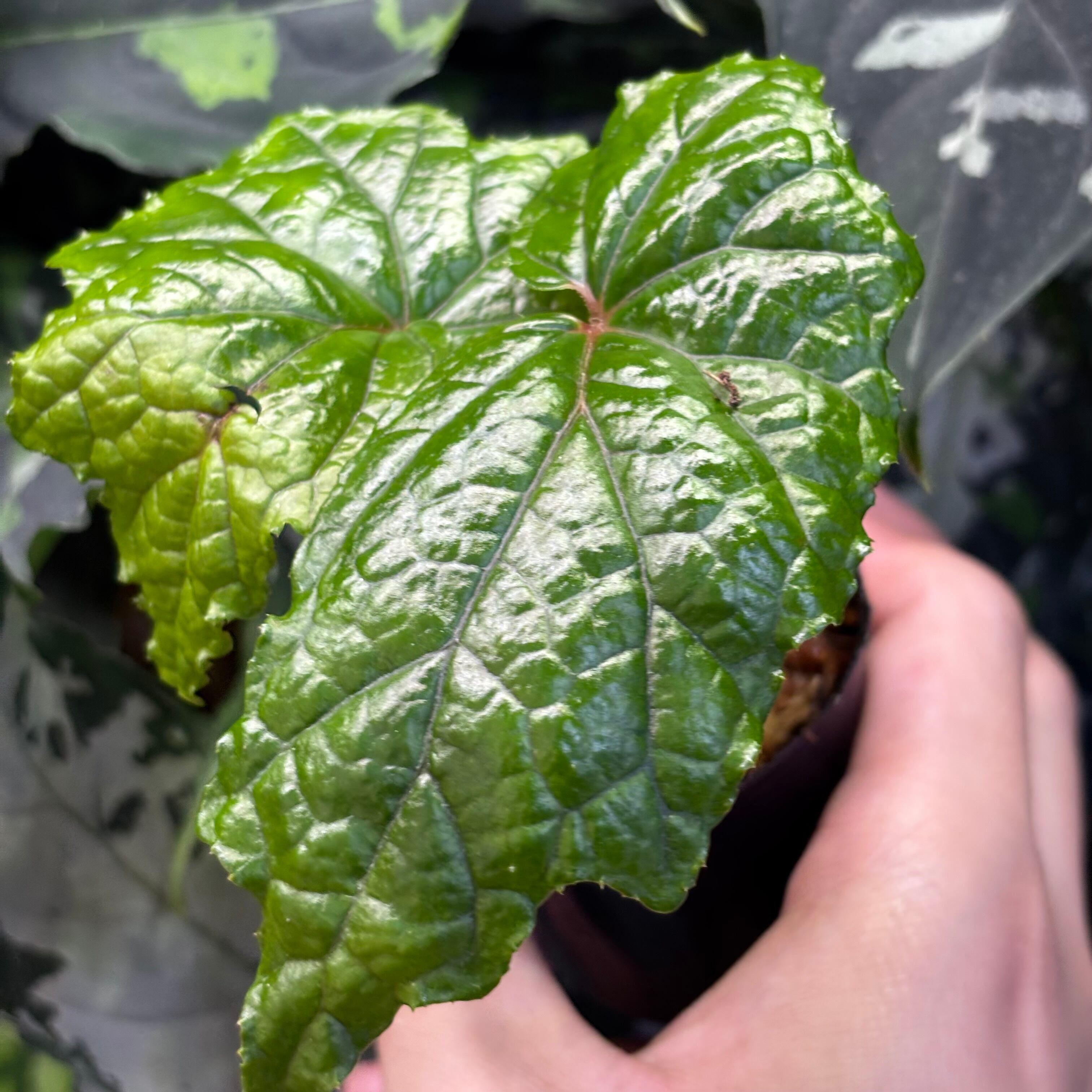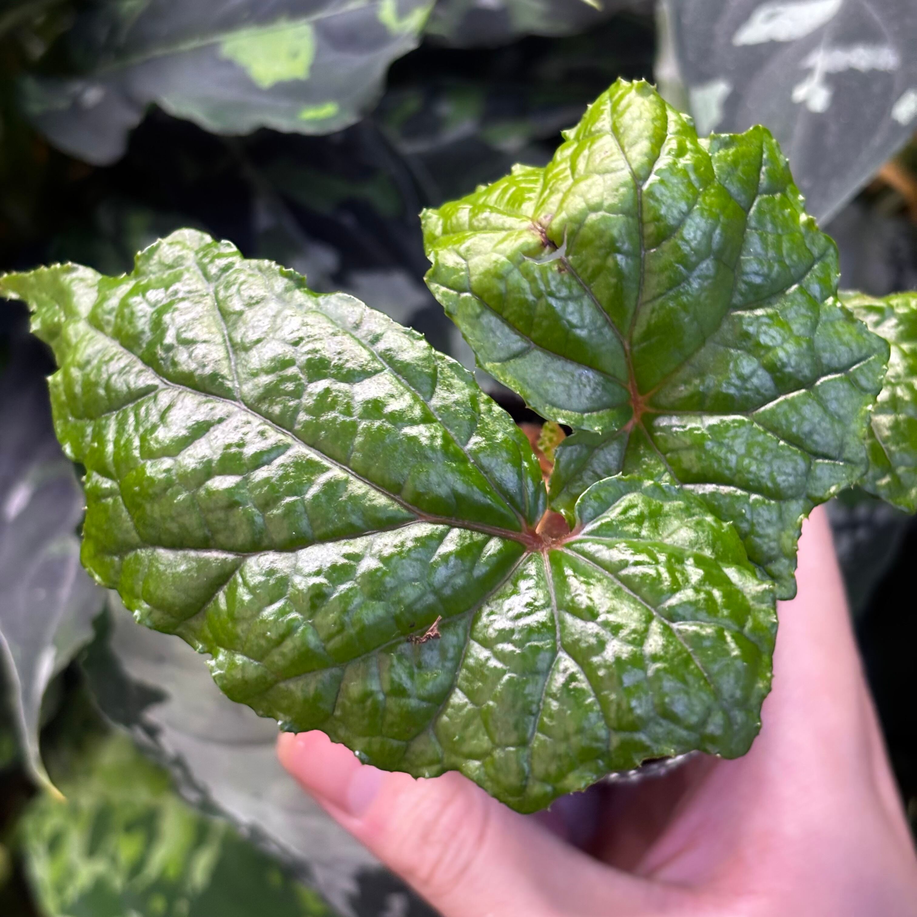 フィリピン原産のボコボコとした形状の葉が特徴的な木立性ベゴニアです。