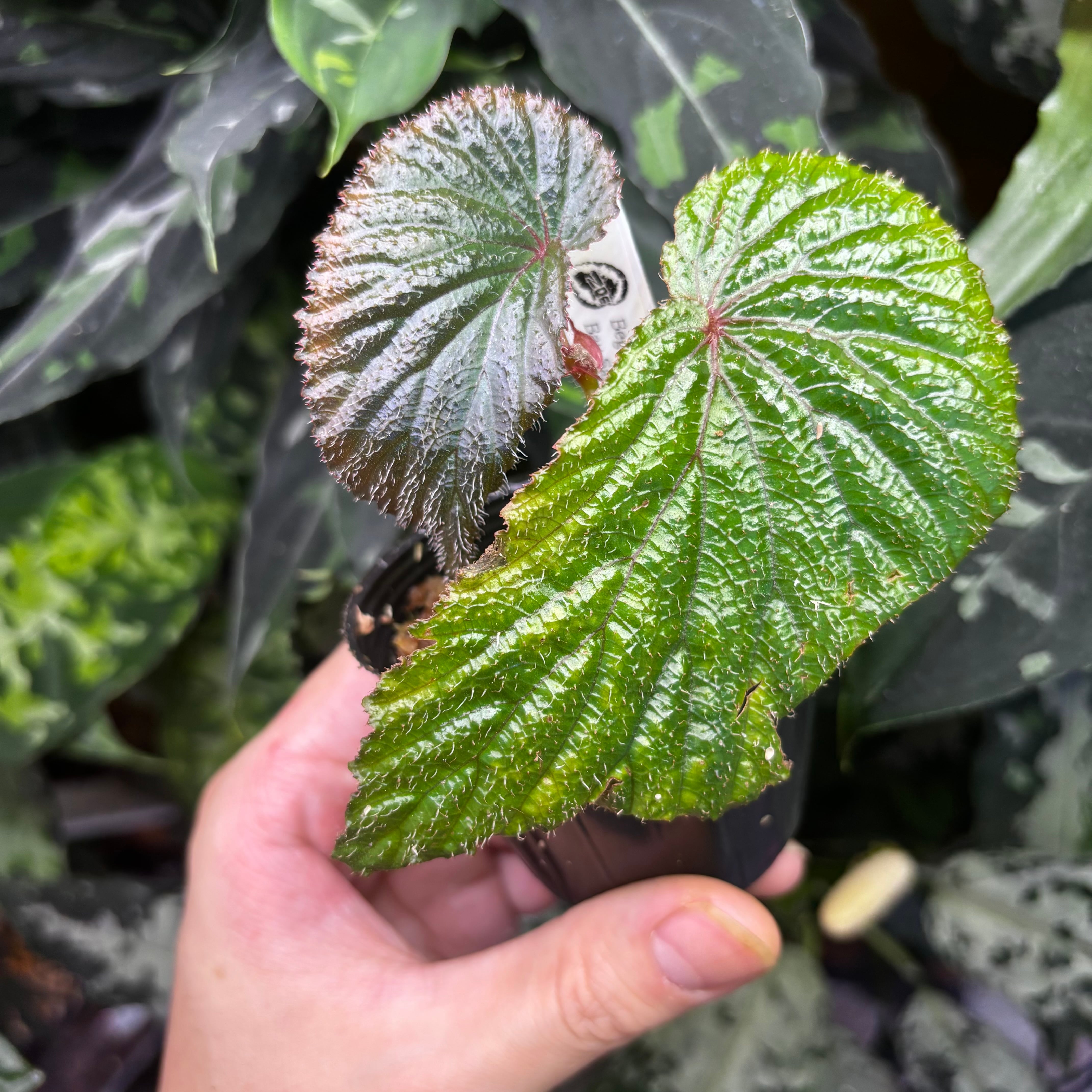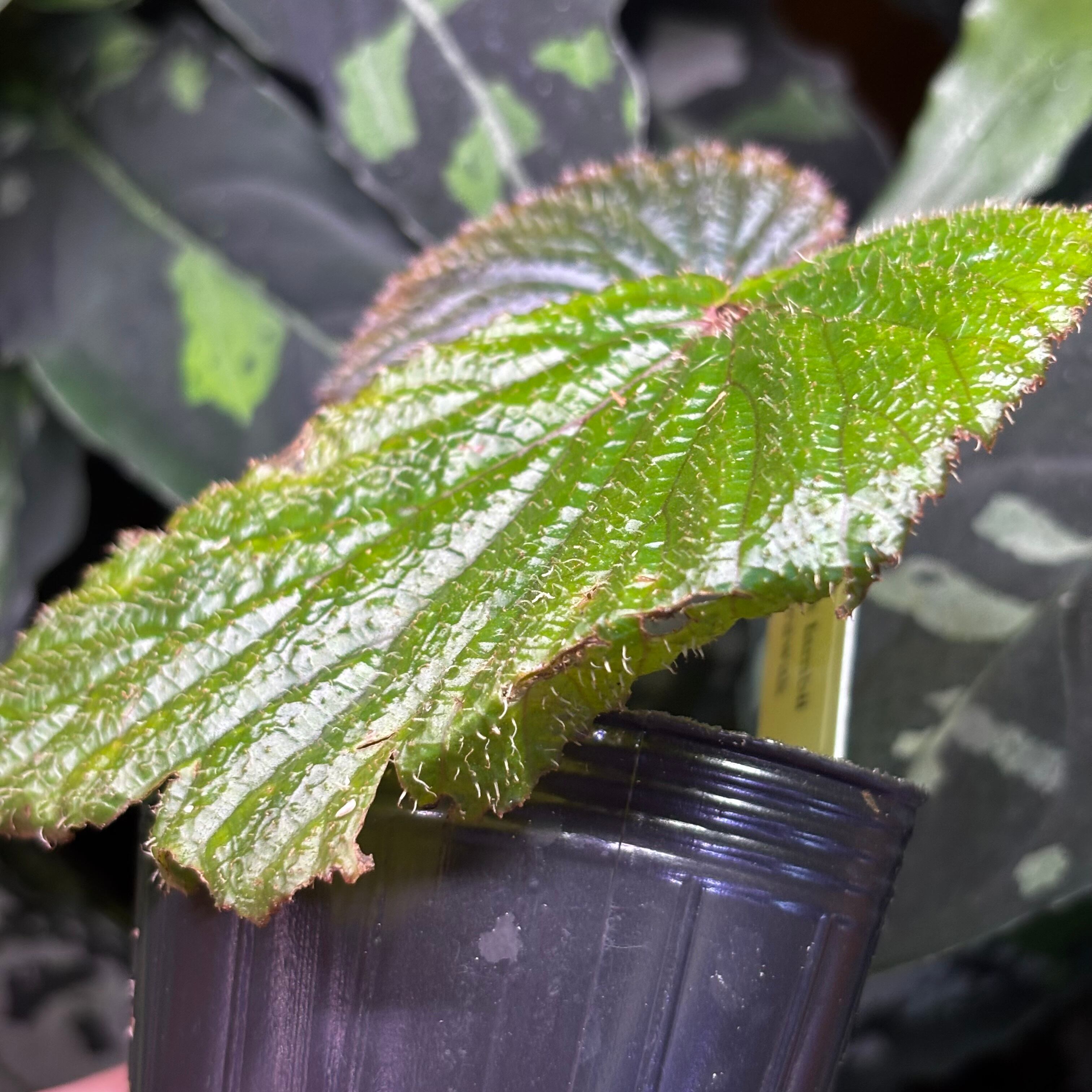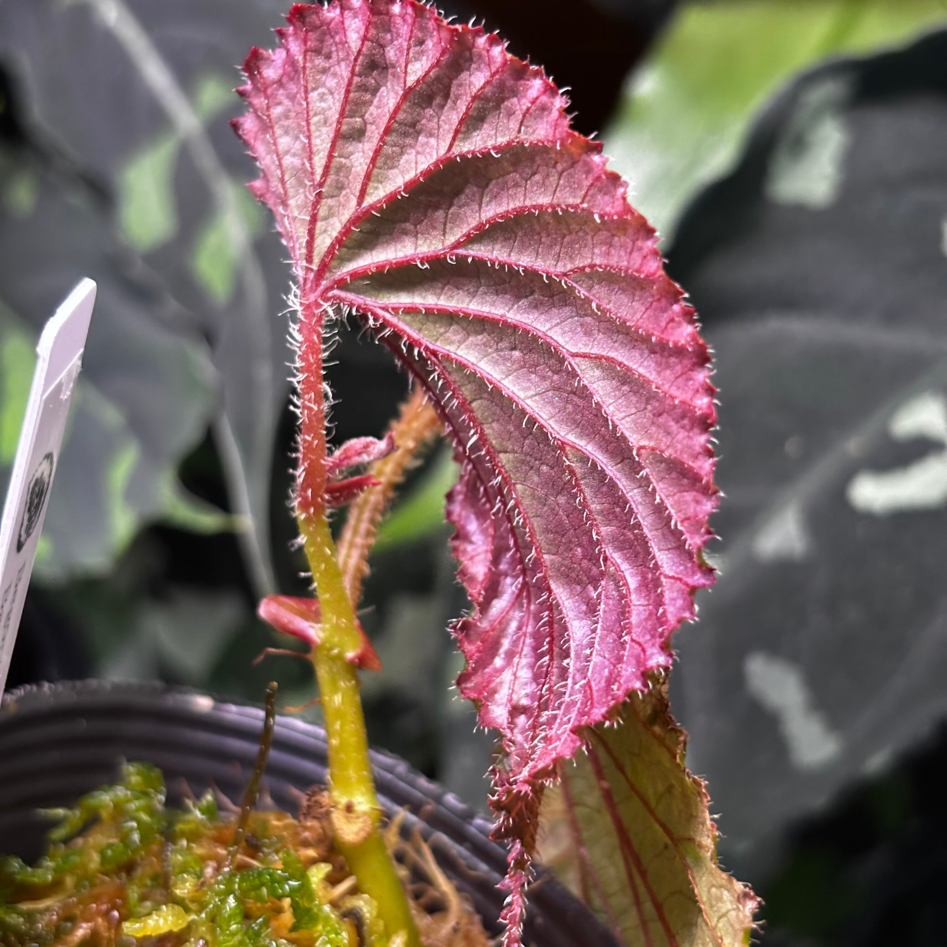 葉の表面にびっしりと毛が生える奇妙な木立性ベゴニアです。