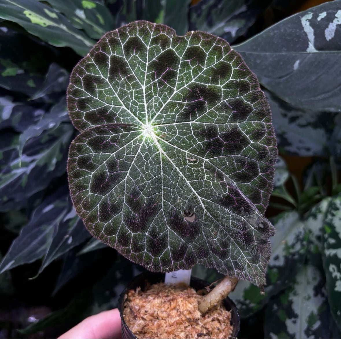 雷の学名を持つ、蜘蛛の巣状の模様が大変美しい人気の球根性ベゴニアです。一度休眠すると次に発芽させるのが難しいためなかなか出回りませんが、葉挿しや挿し木をすることで通年維持することができます。