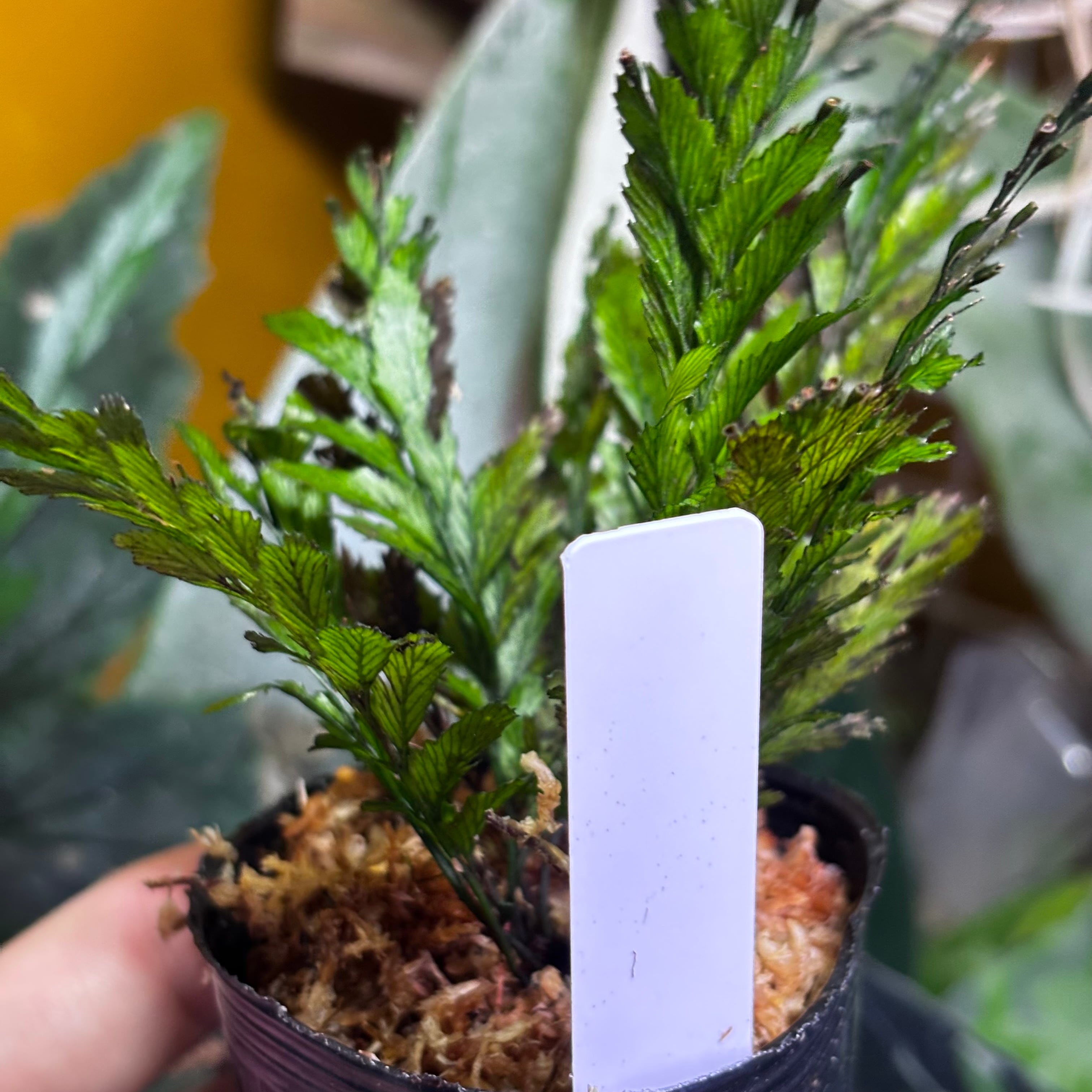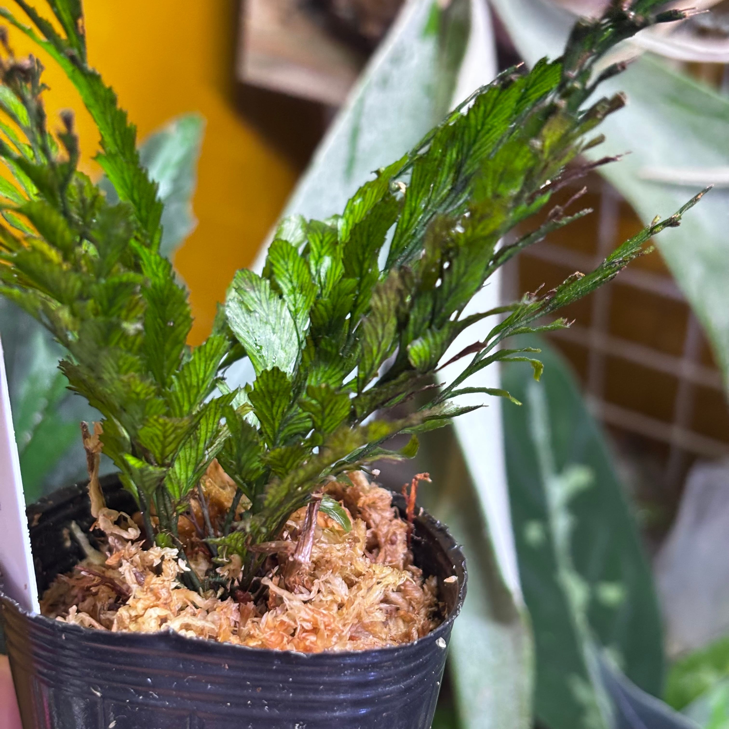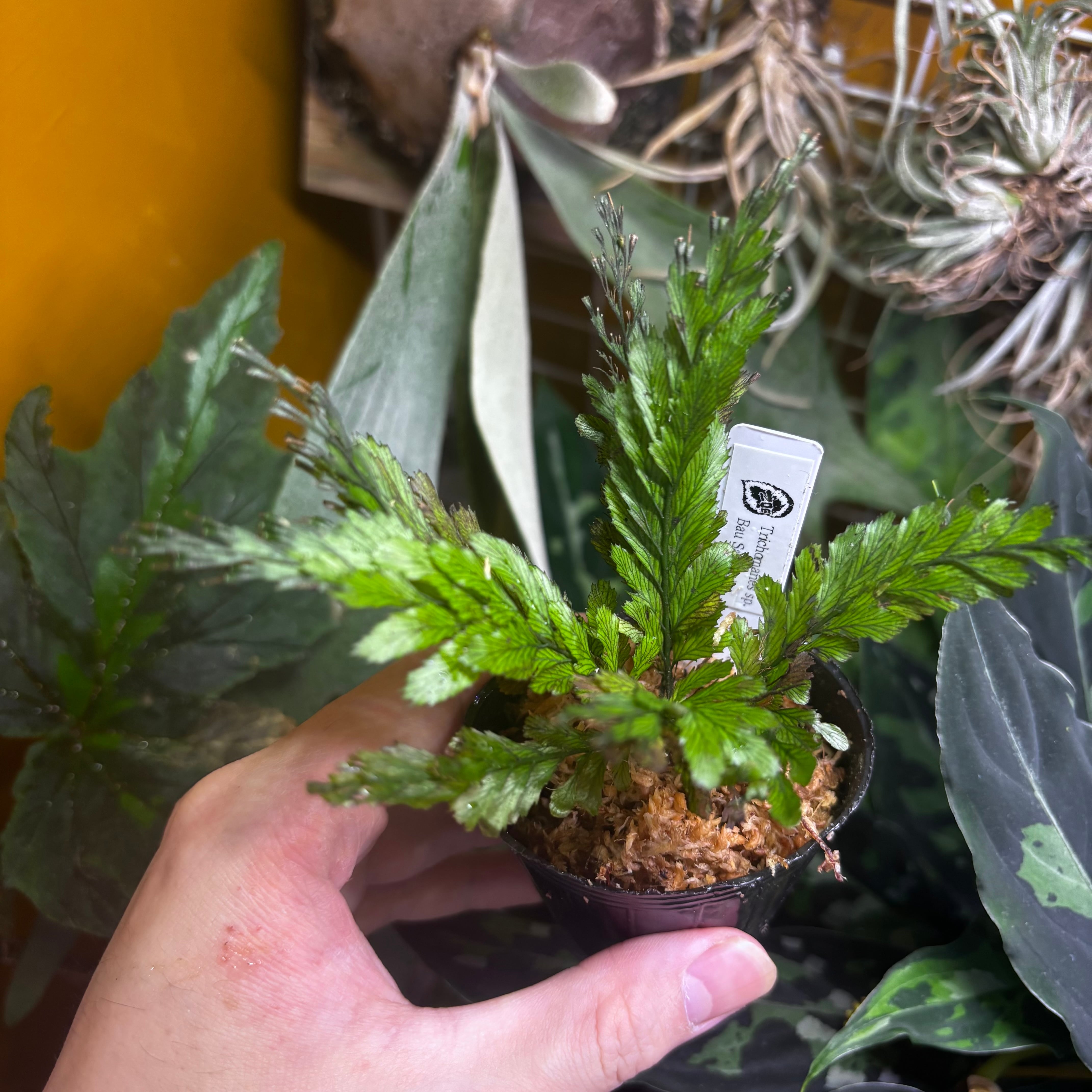 半透明で繊細な葉を持つ美しいシダ植物です。その見た目とは裏腹に葉は硬く力強い株です。