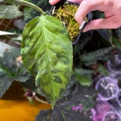 2023年の4月にアチェから来た株です。アチェ産にしては広葉で、銀の色味が強い株です。