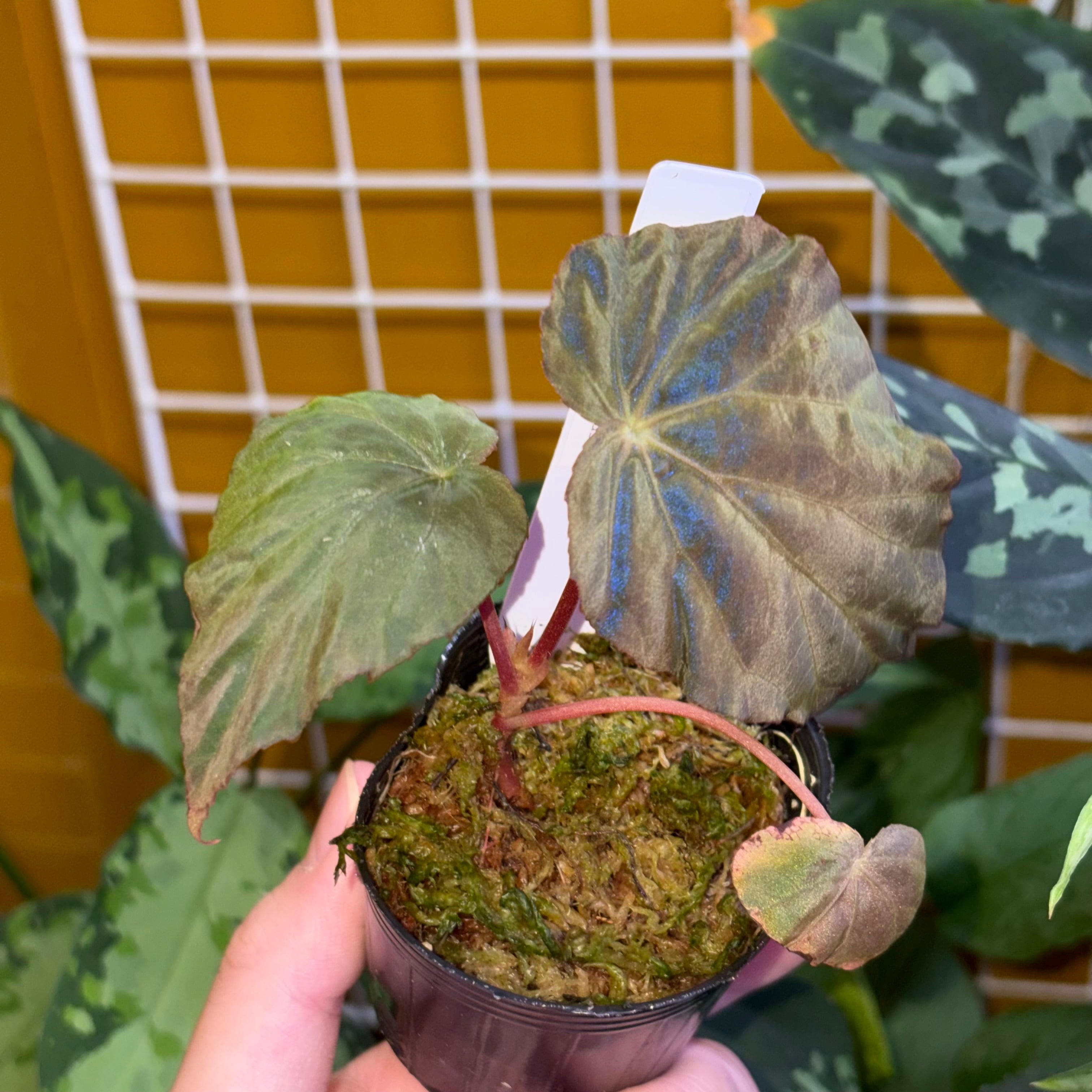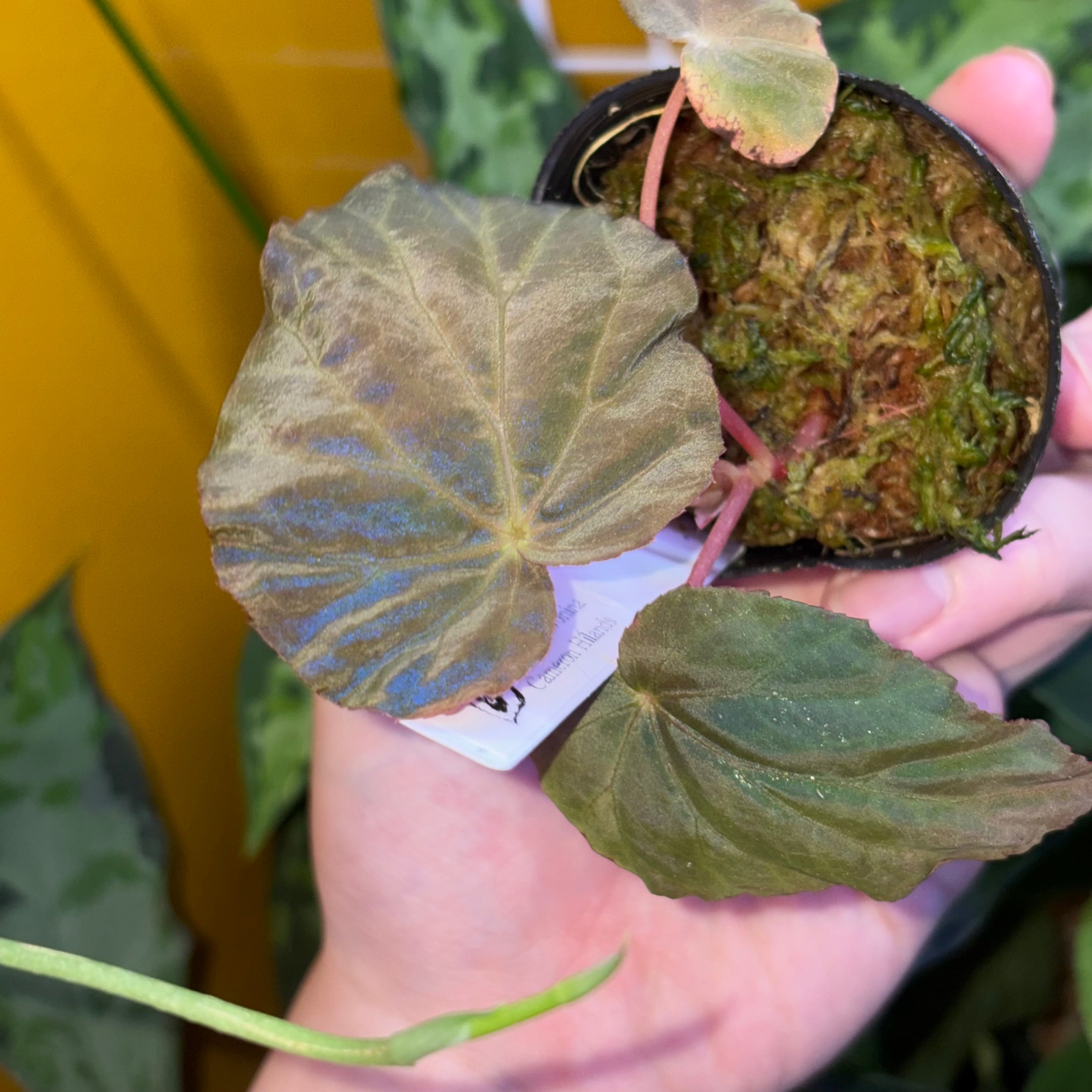 非常に丈夫で常湿でも育てられるので、初心者の方にもお楽しみいただけます。ぜひ青光りベゴニアの入門にどうぞ。