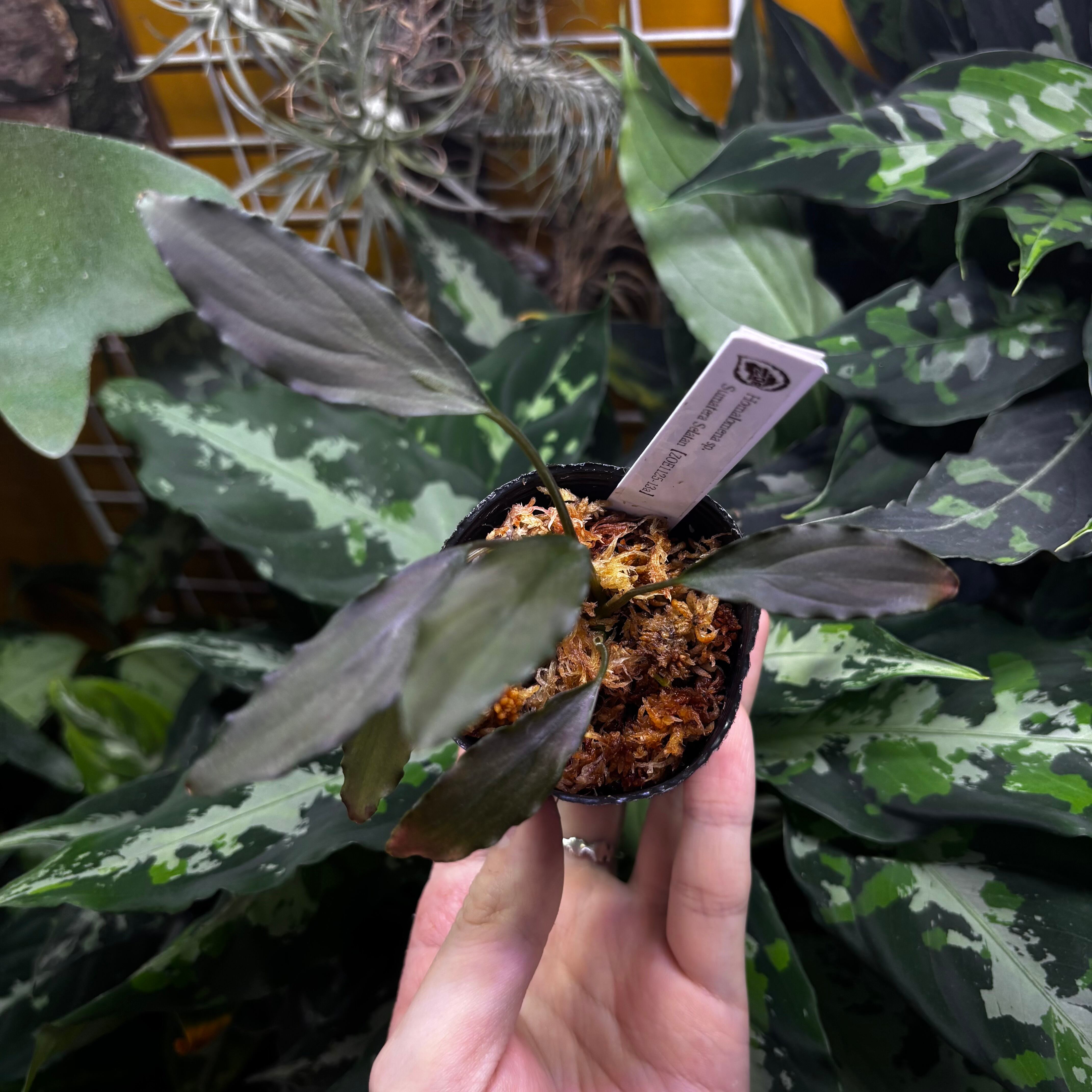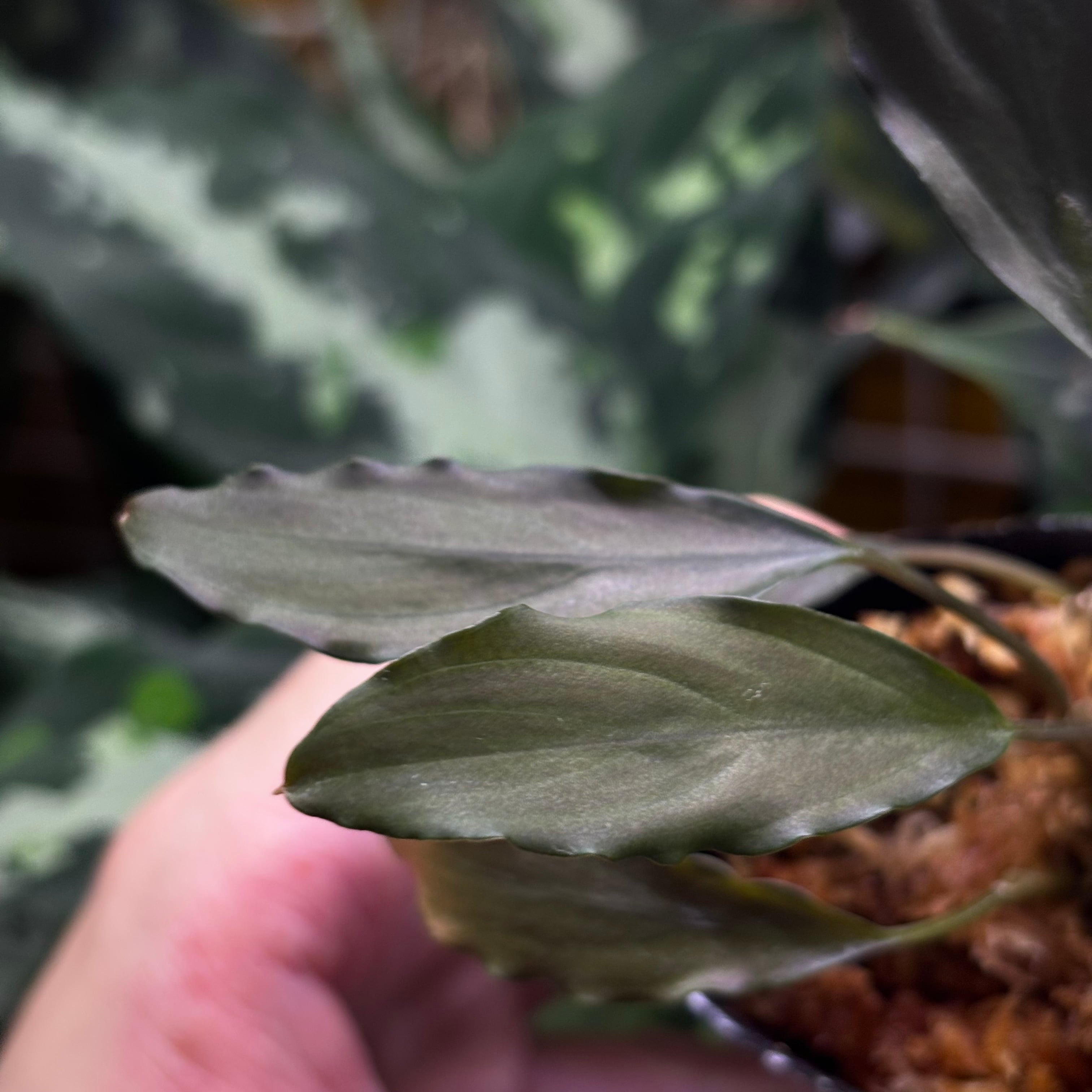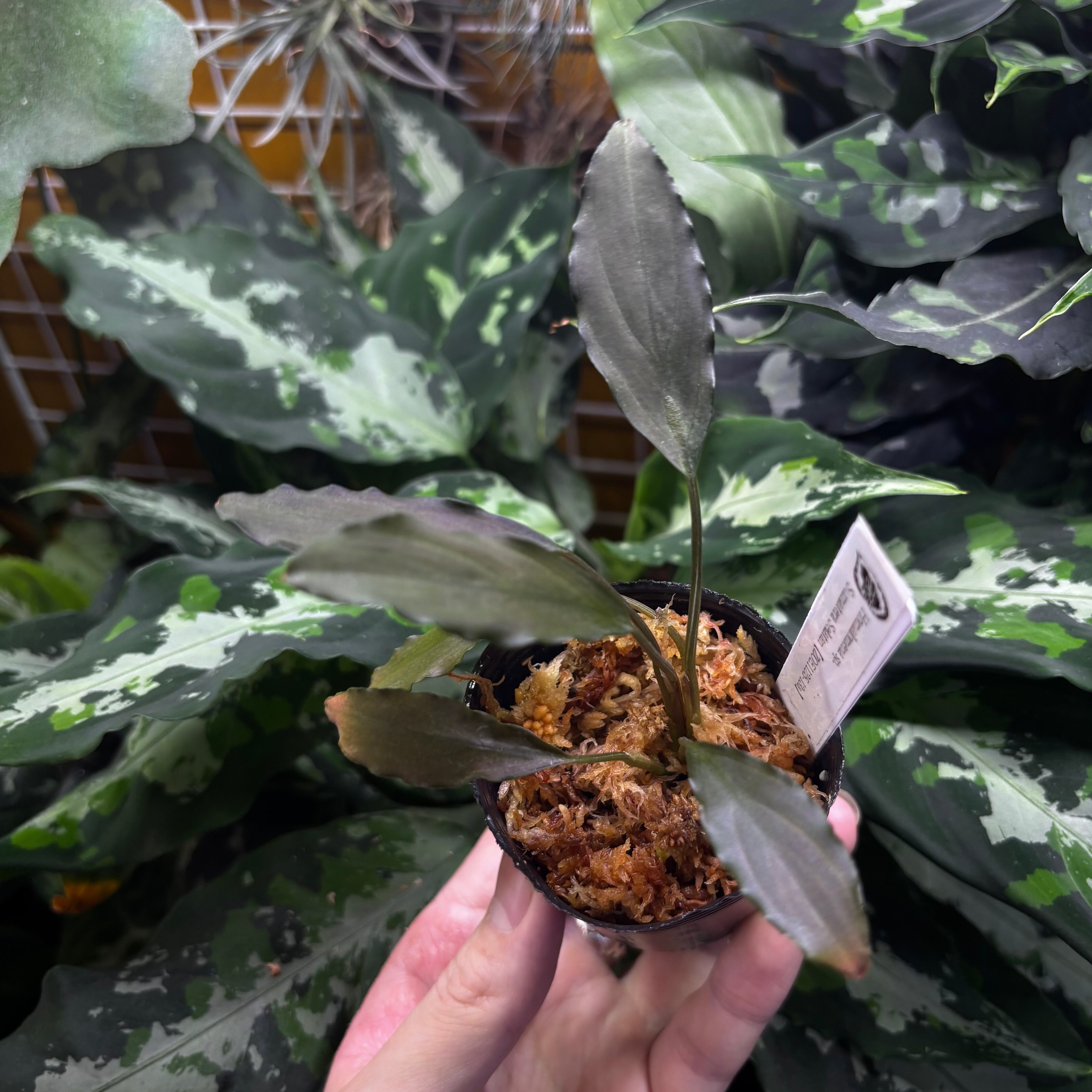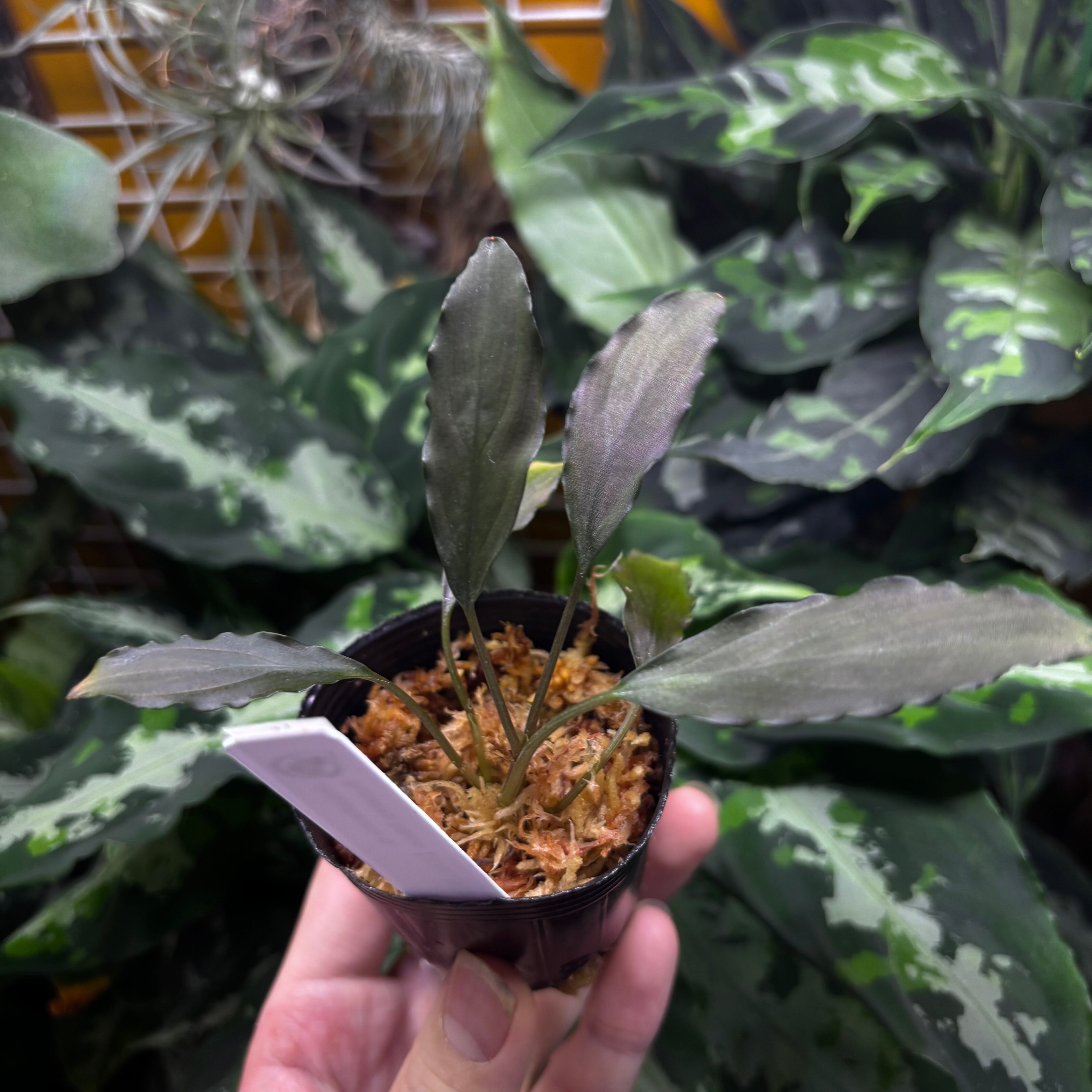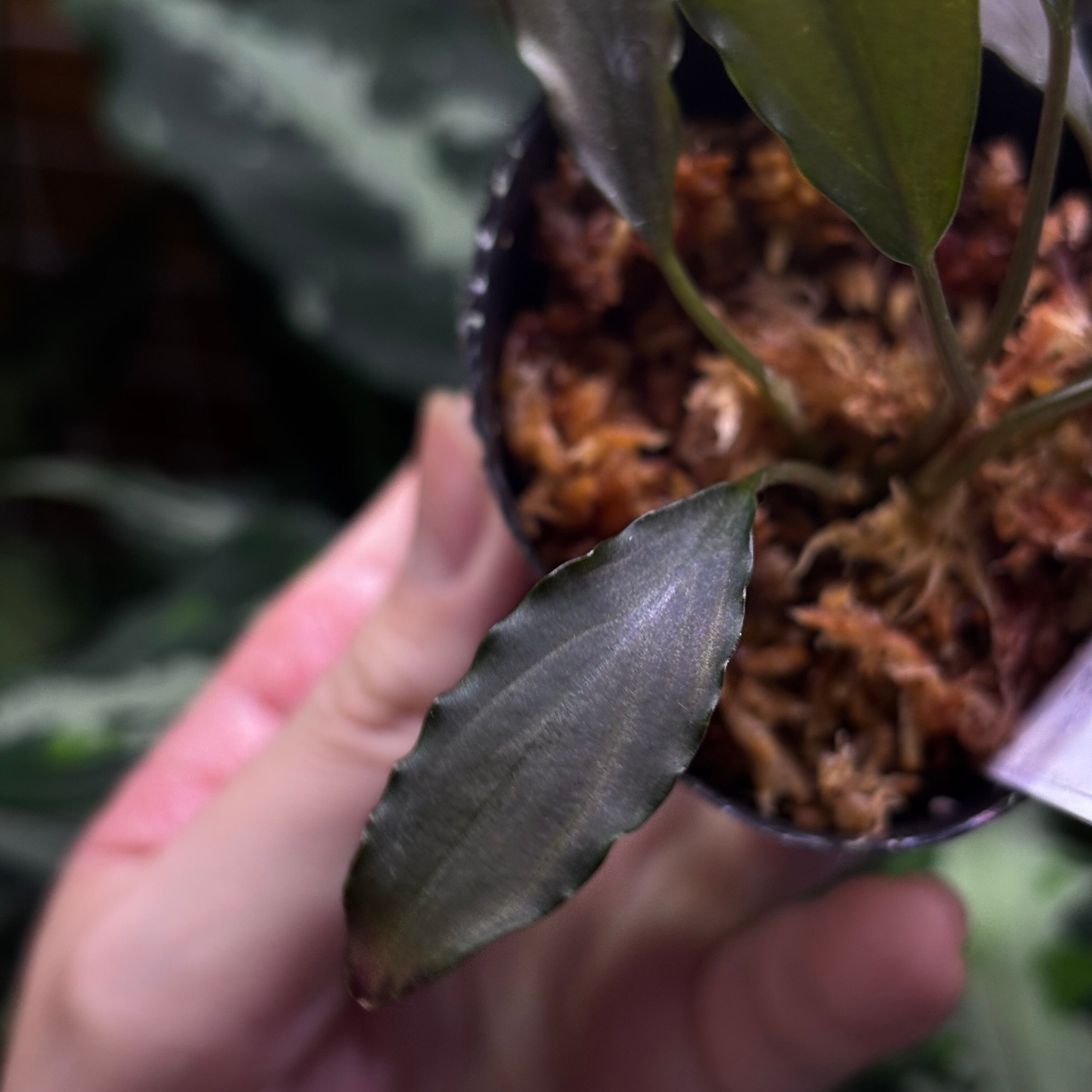 ウェービーな黒い葉を持つ細葉のホマロメナです。渓流に自生するタイプです。