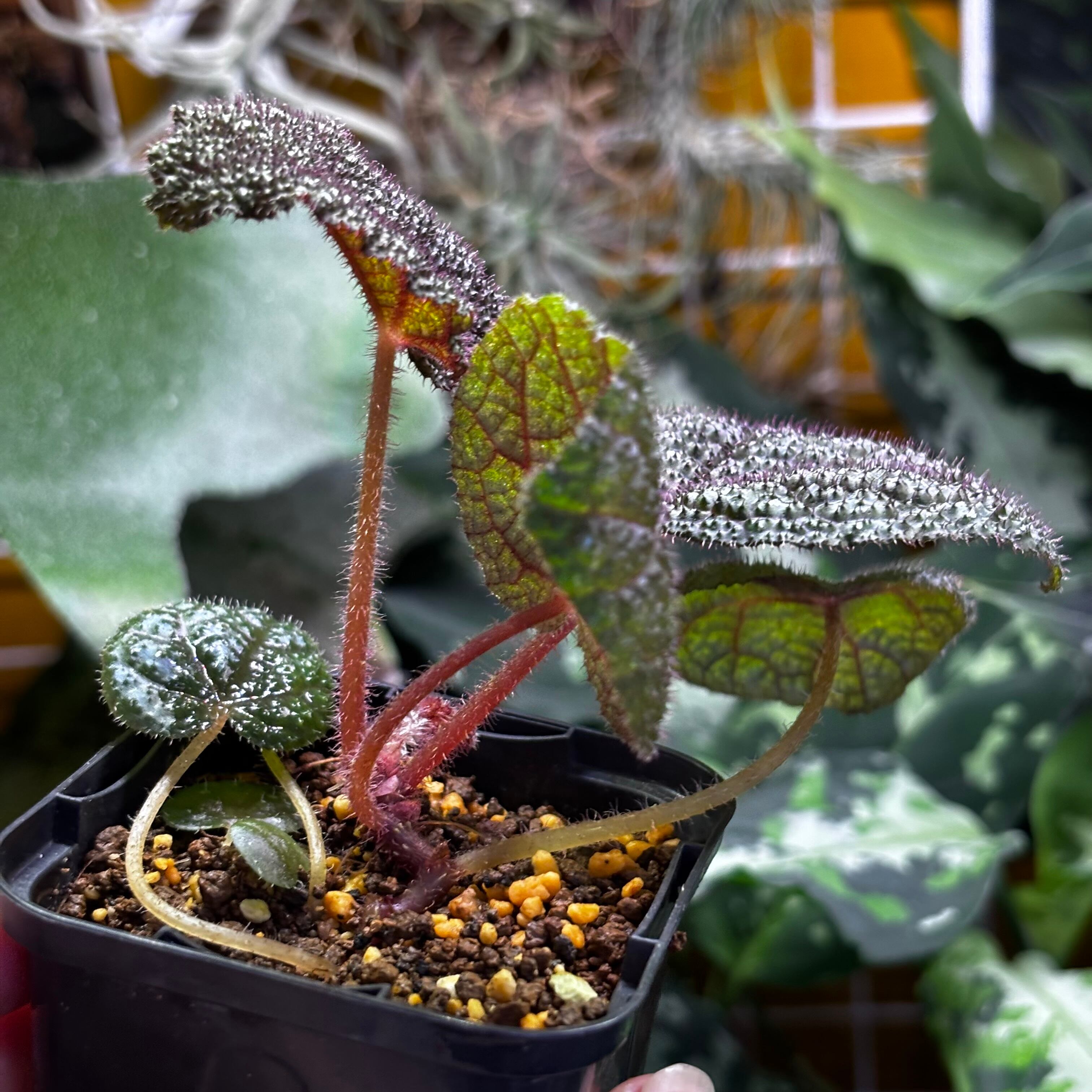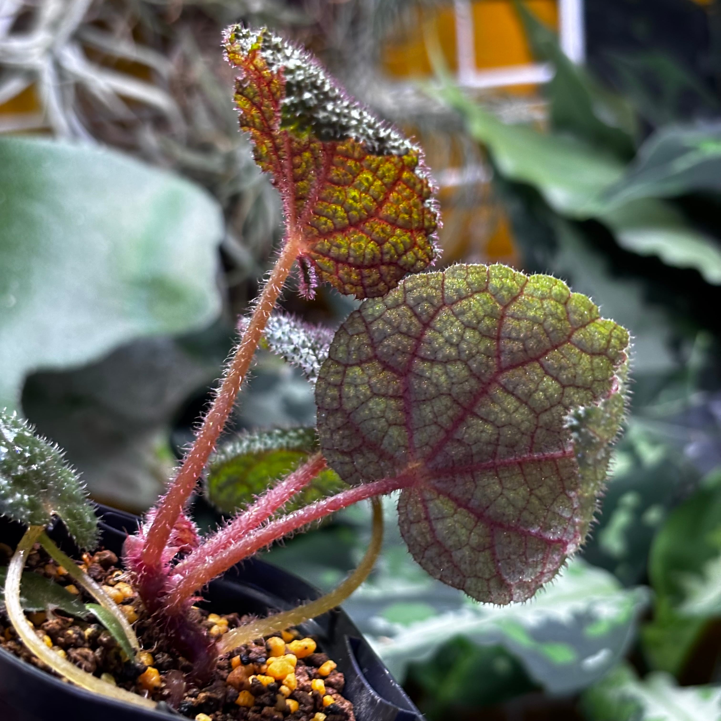 ストライプ模様が美しいゴワゴワとした質感の葉を持つ美しい根茎種。