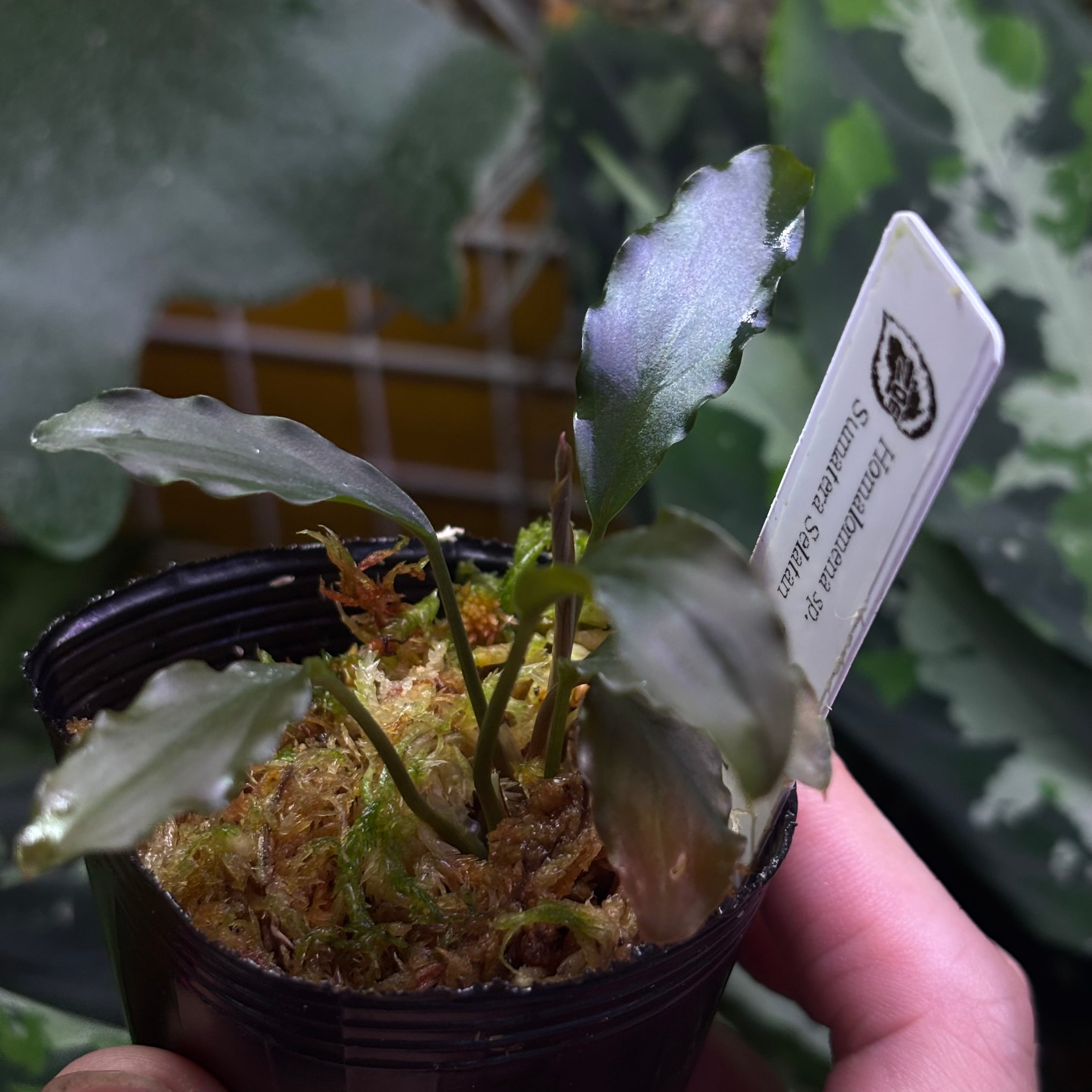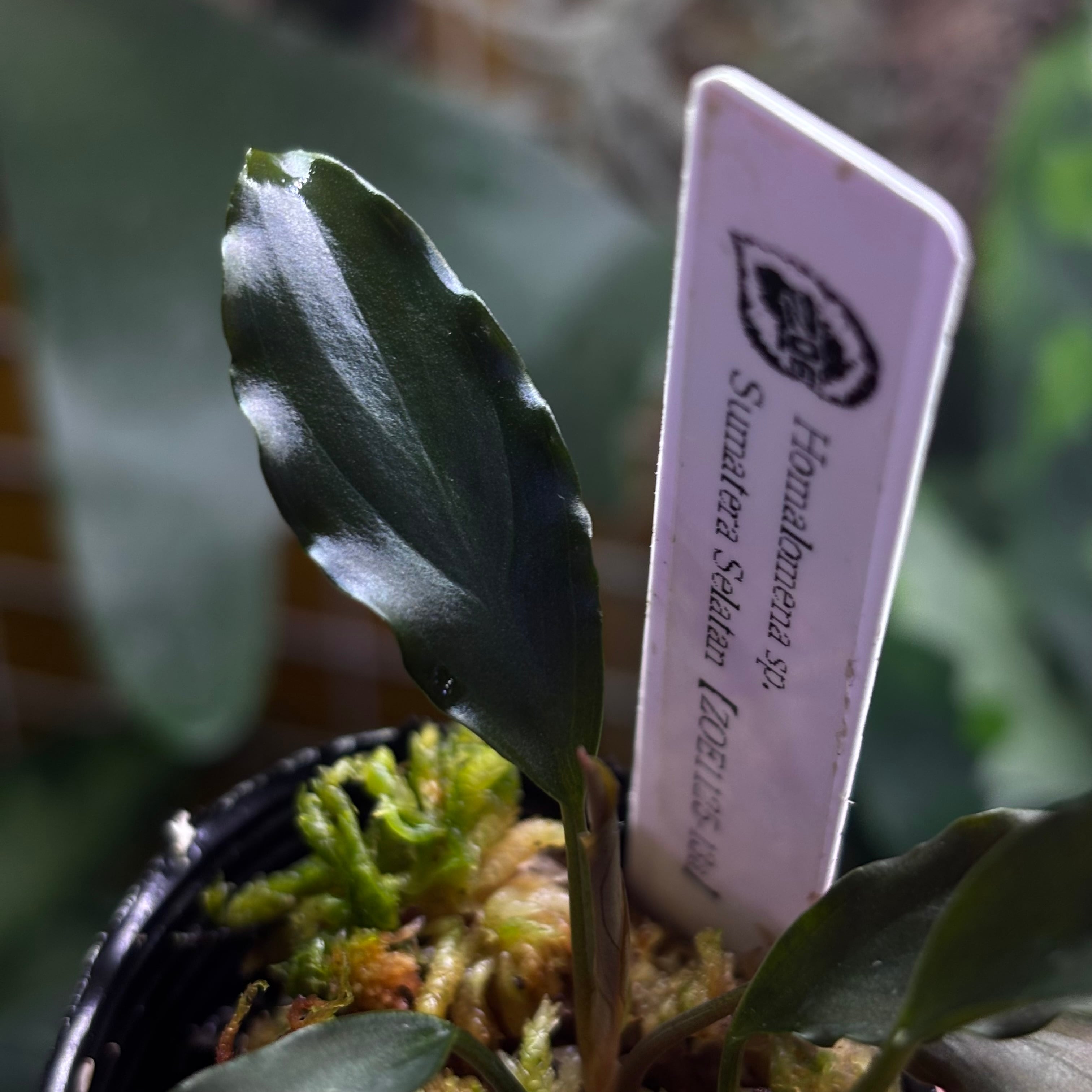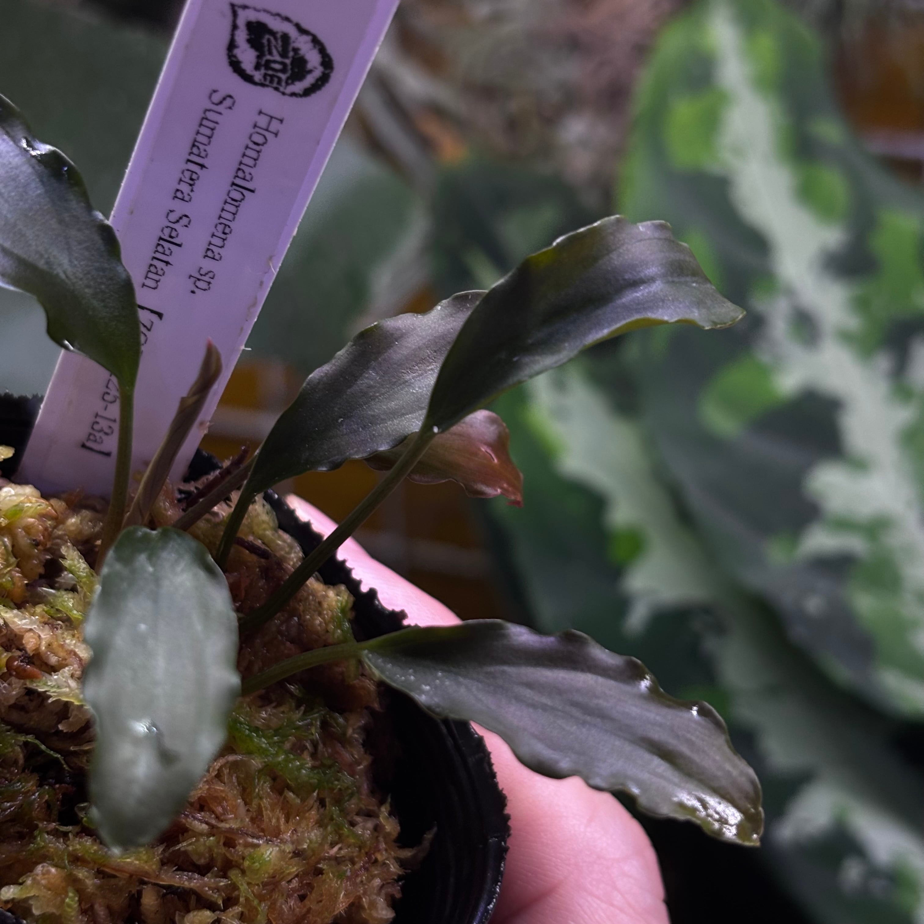 ウェービーな黒い葉を持つ細葉のホマロメナです。渓流に自生するタイプです。