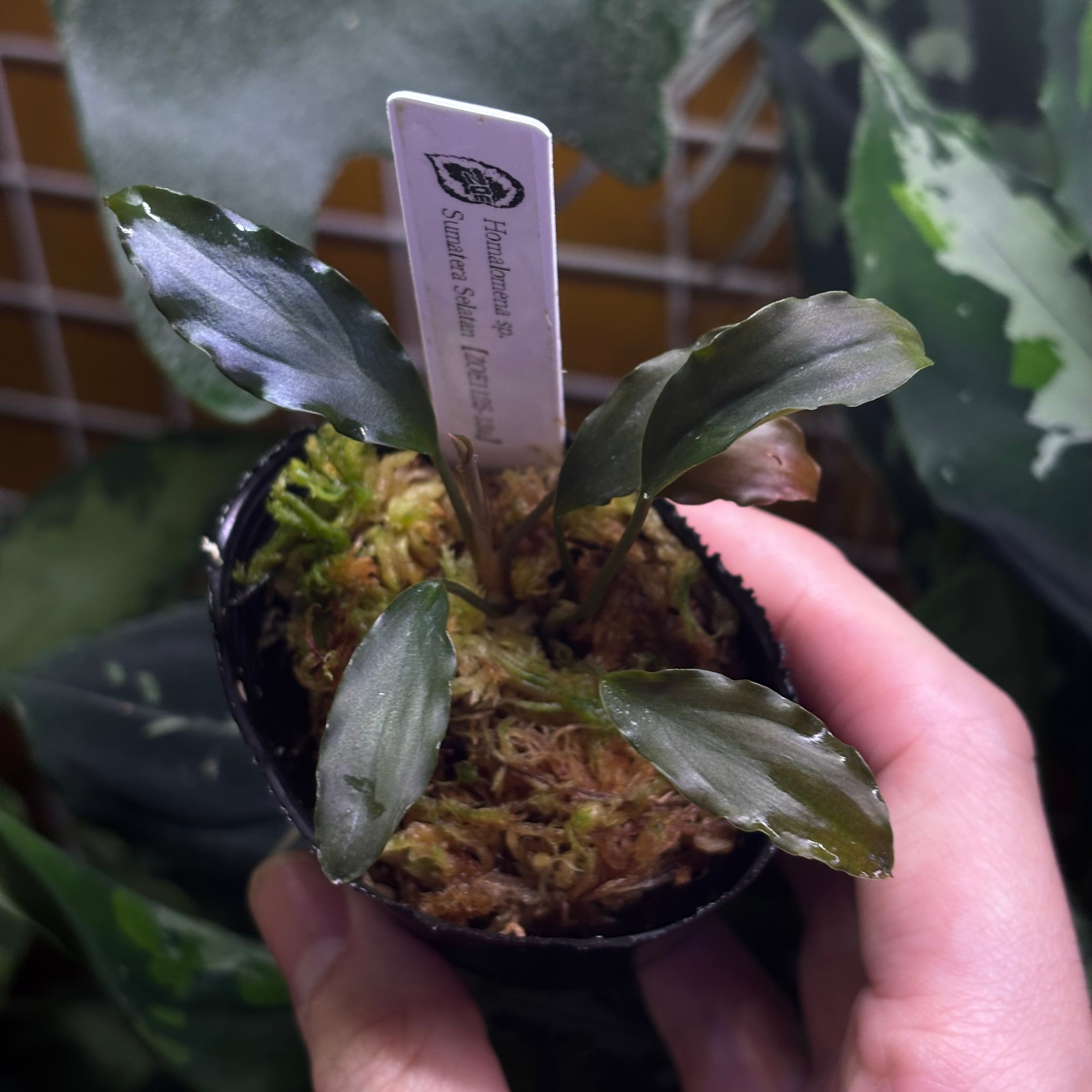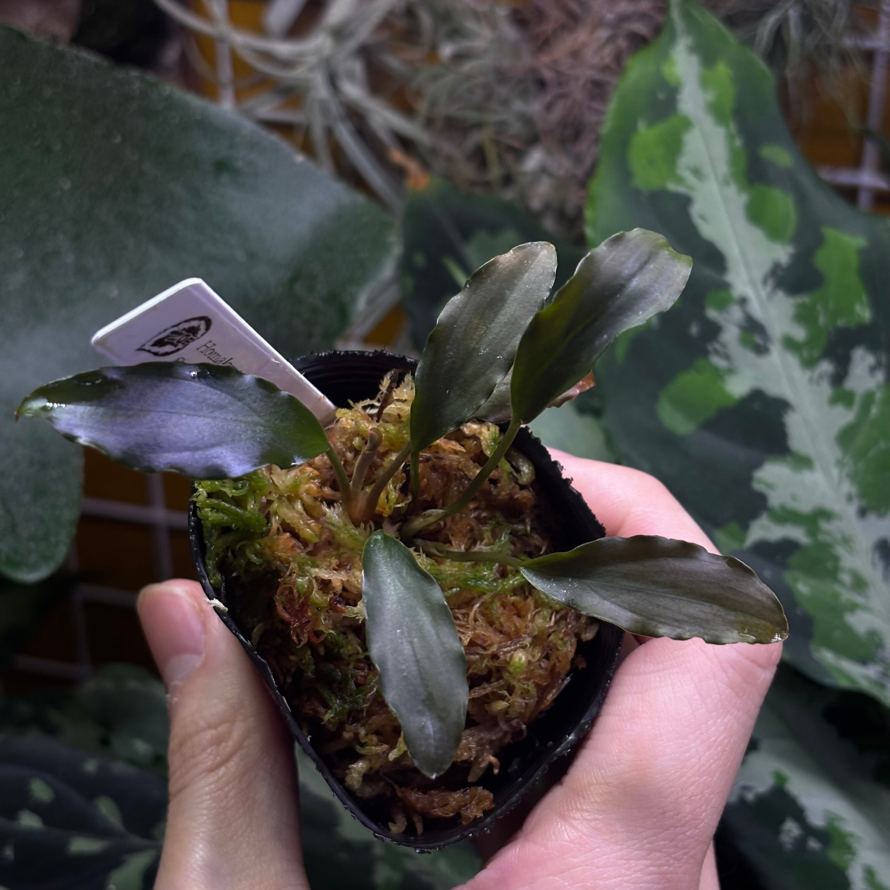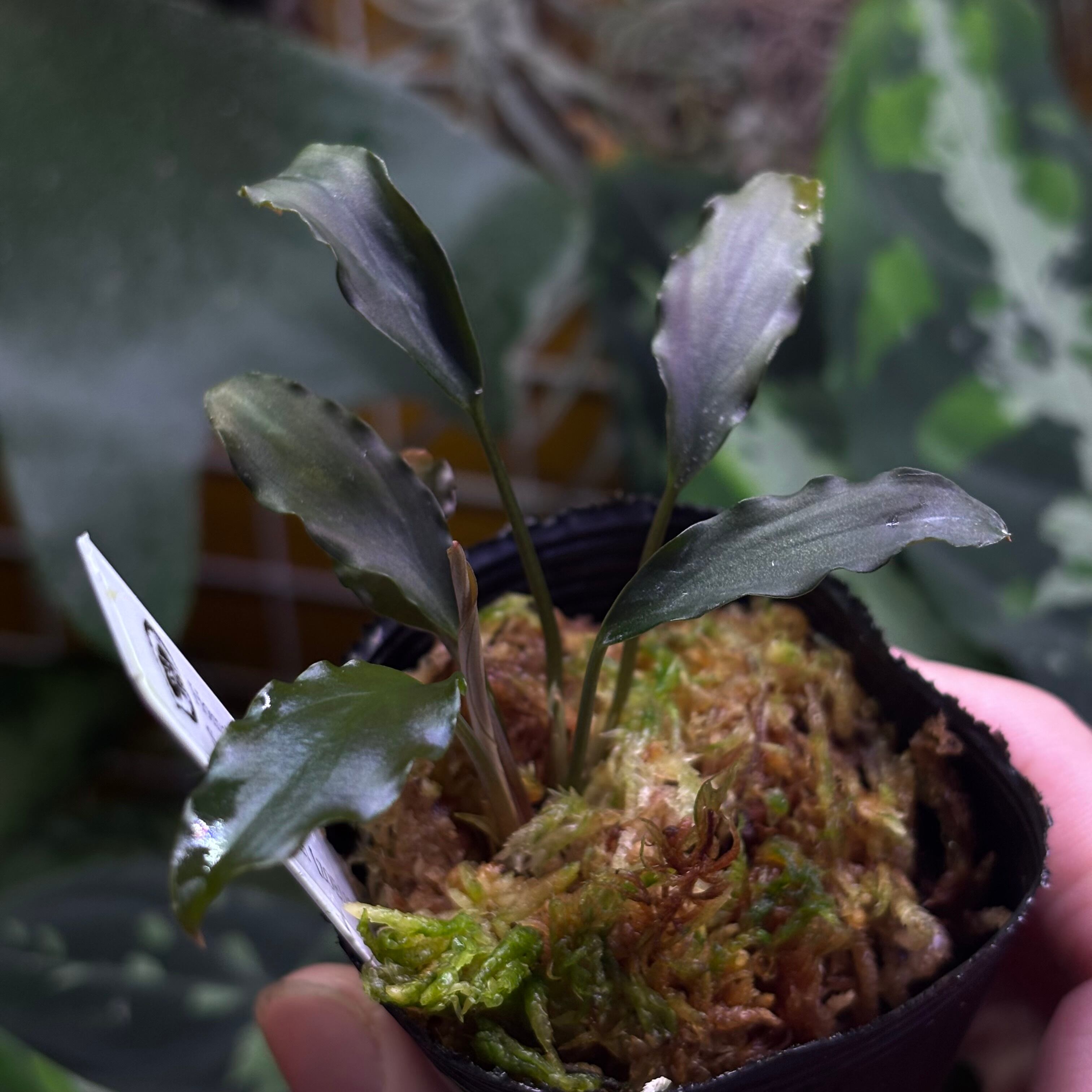 ウェービーな黒い葉を持つ細葉のホマロメナです。渓流に自生するタイプです。