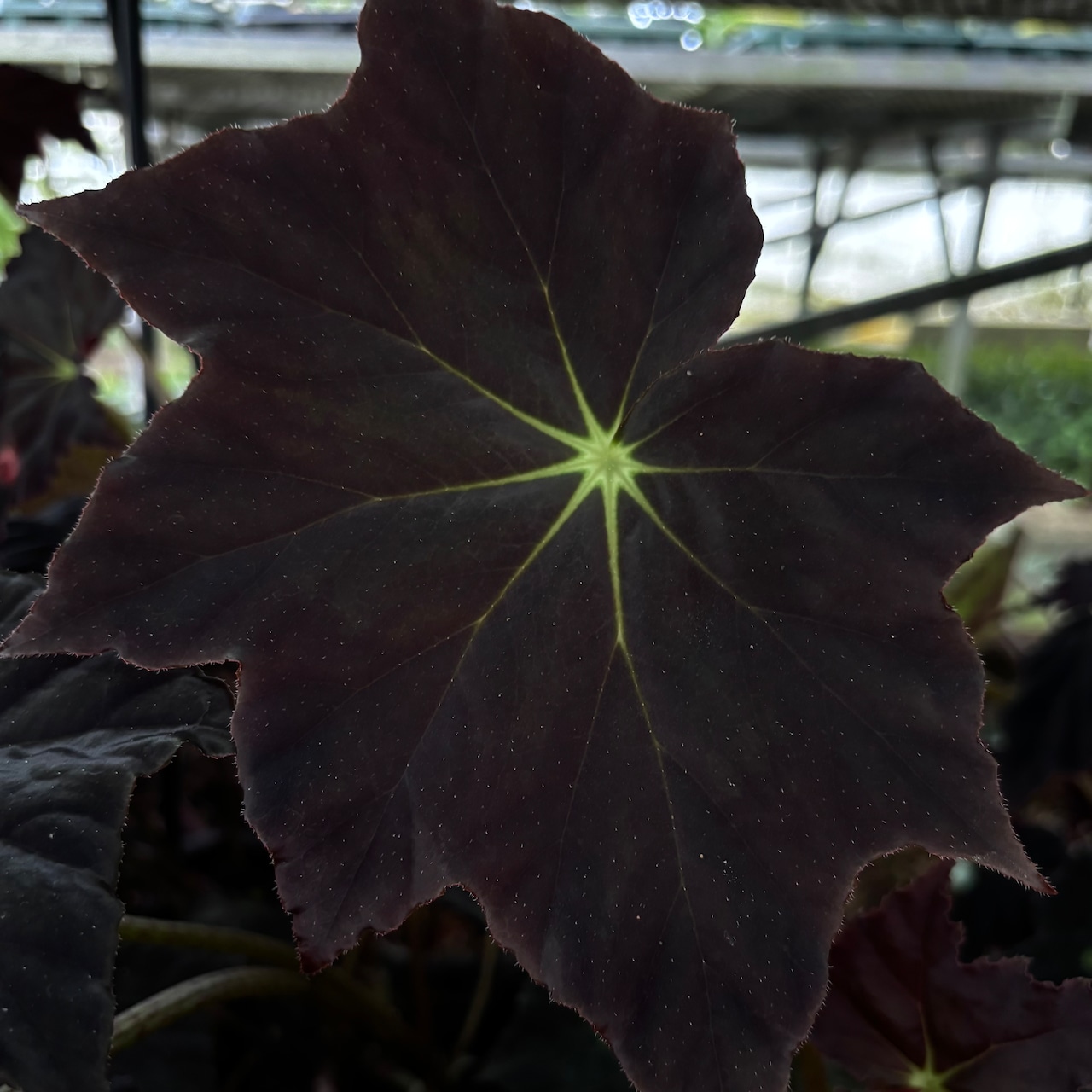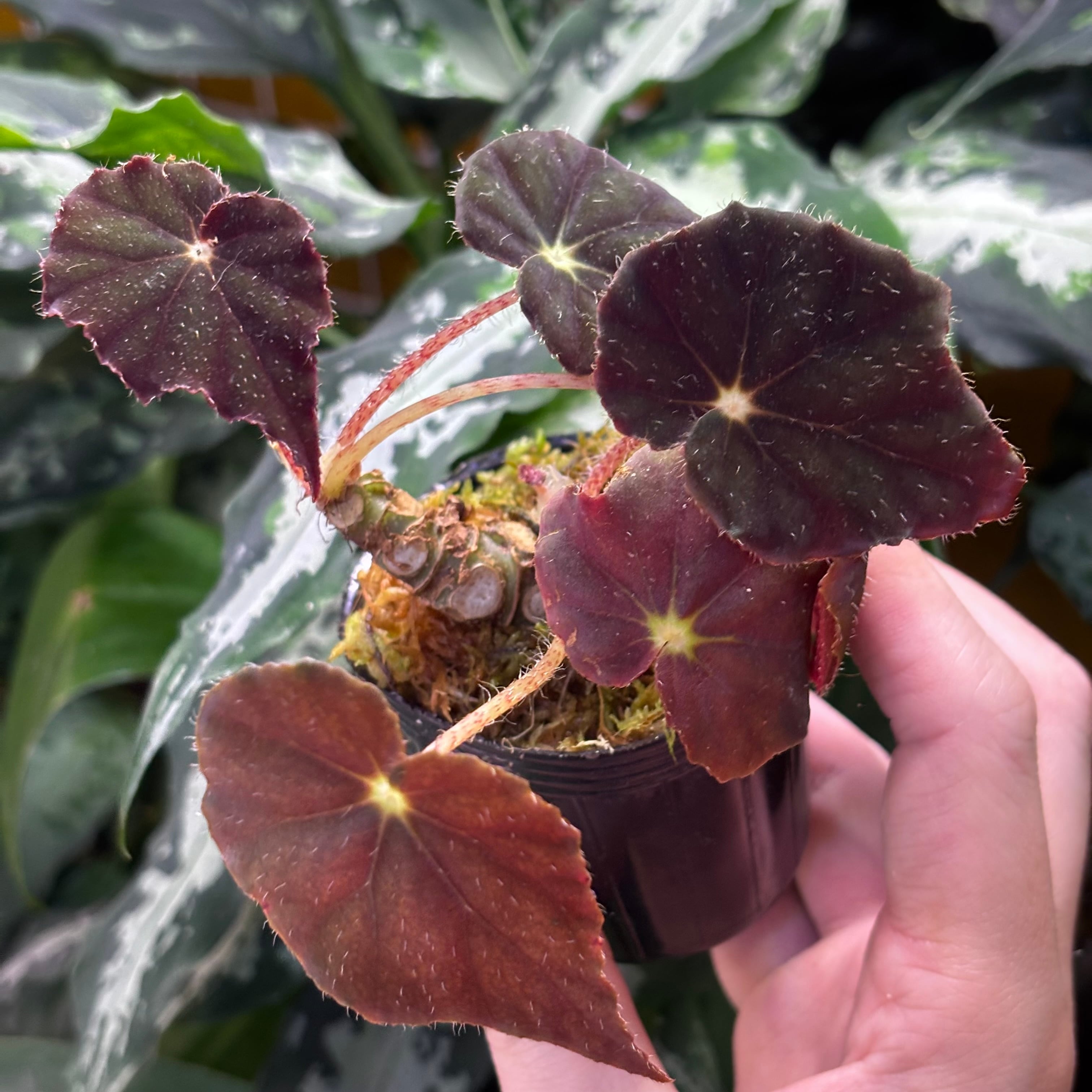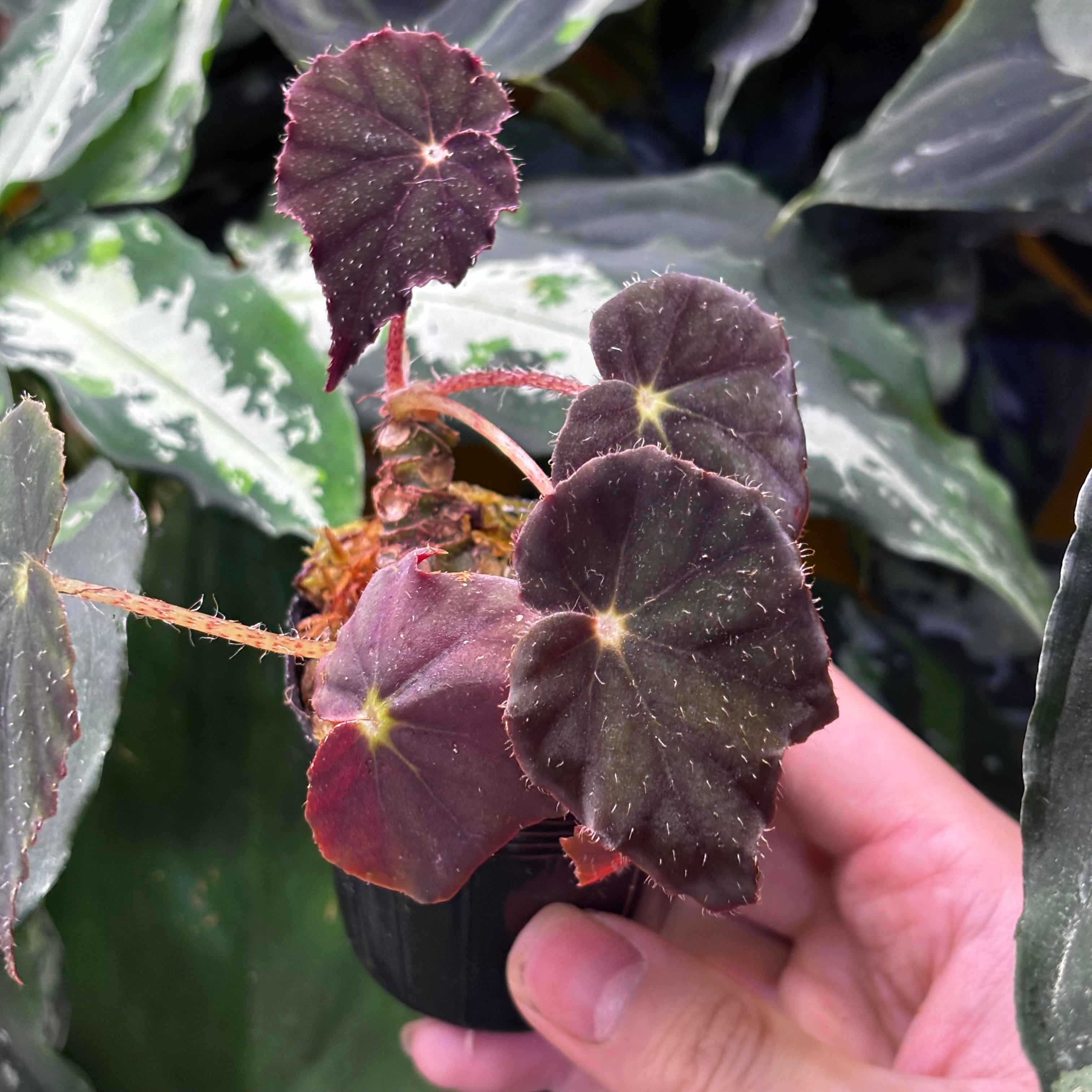 星型の黒い葉が特徴で、葉の中央は蛍光色に染まります。成長につれて根茎が太っていくので、盆栽風に仕立てても面白いかもしれません。