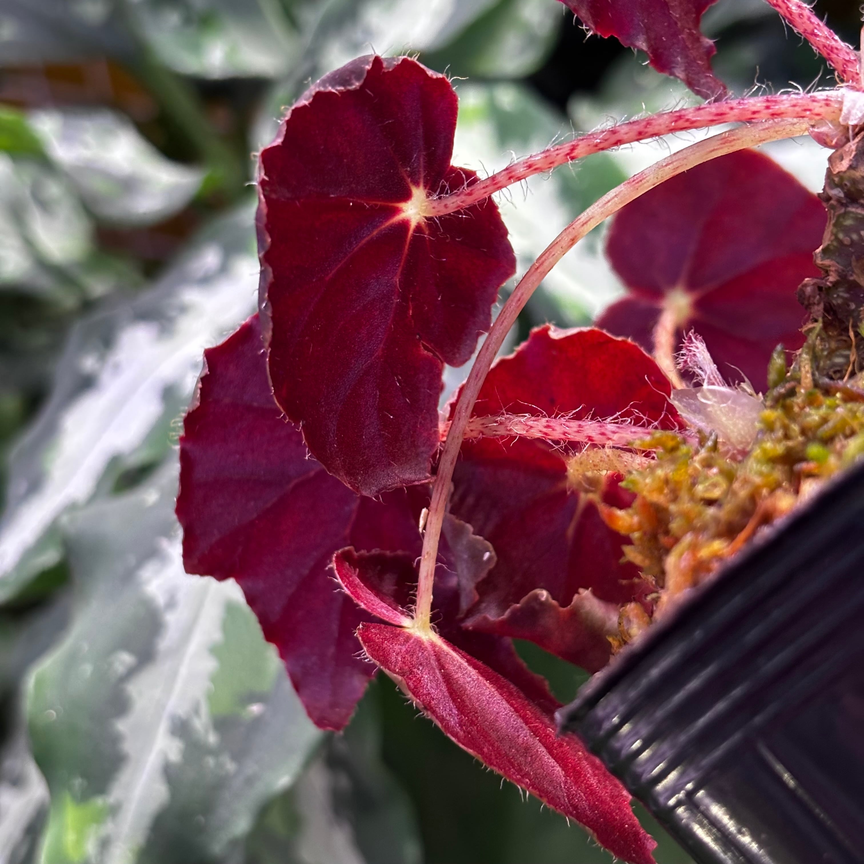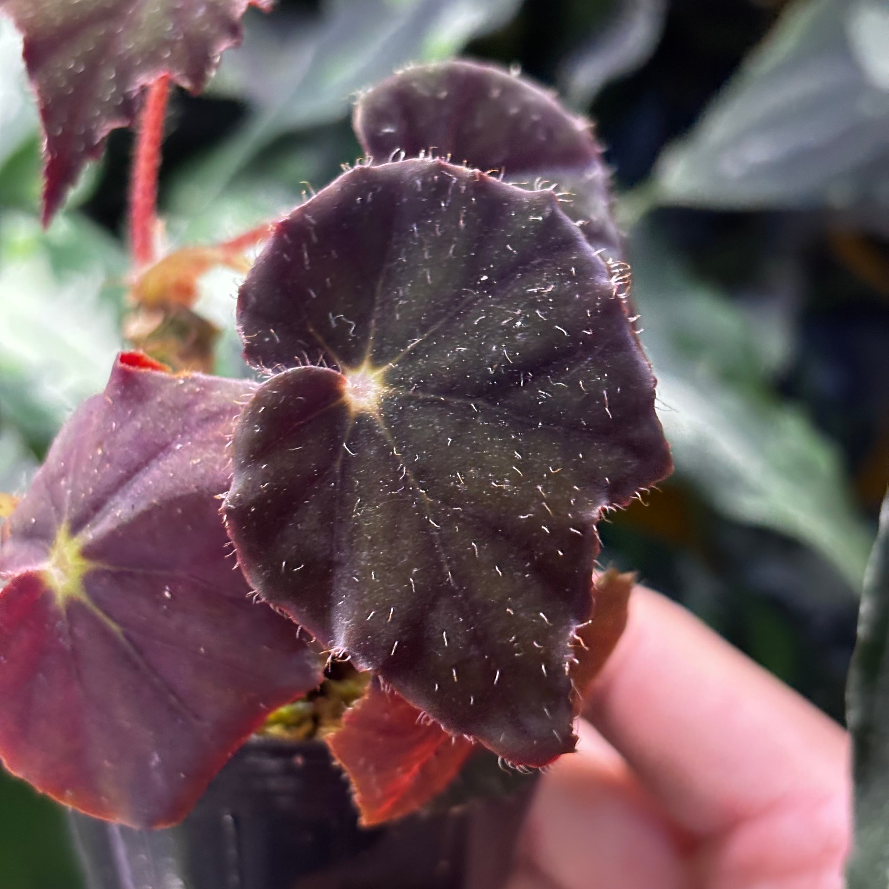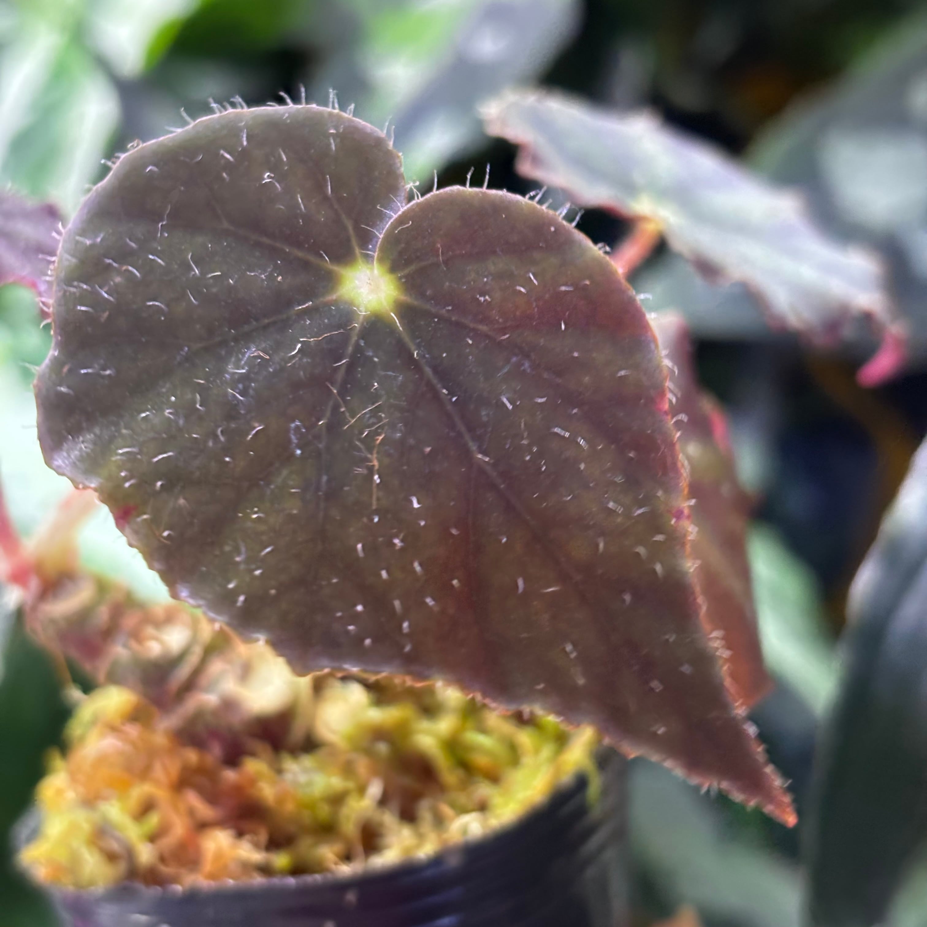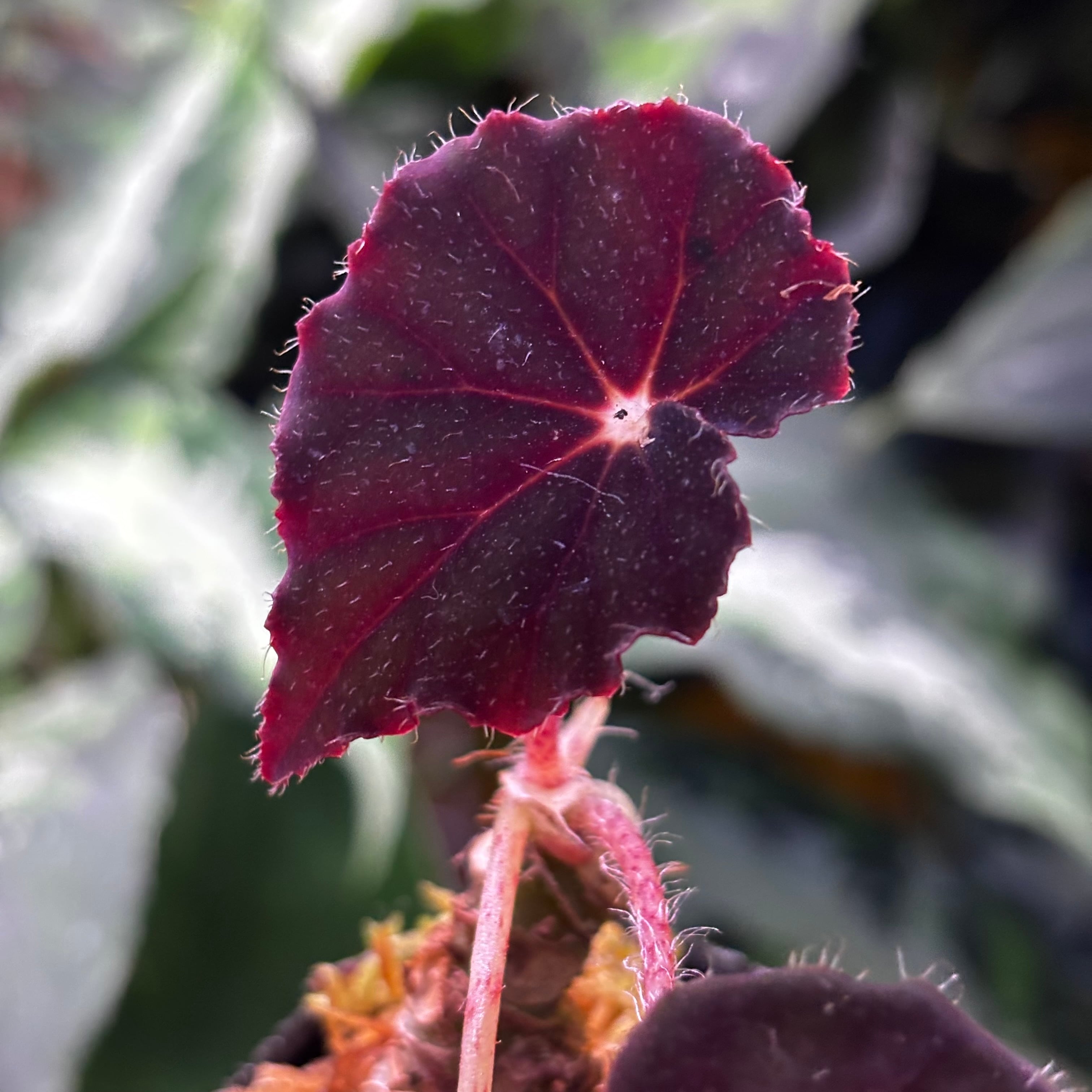 星型の黒い葉が特徴で、葉の中央は蛍光色に染まります。成長につれて根茎が太っていくので、盆栽風に仕立てても面白いかもしれません。