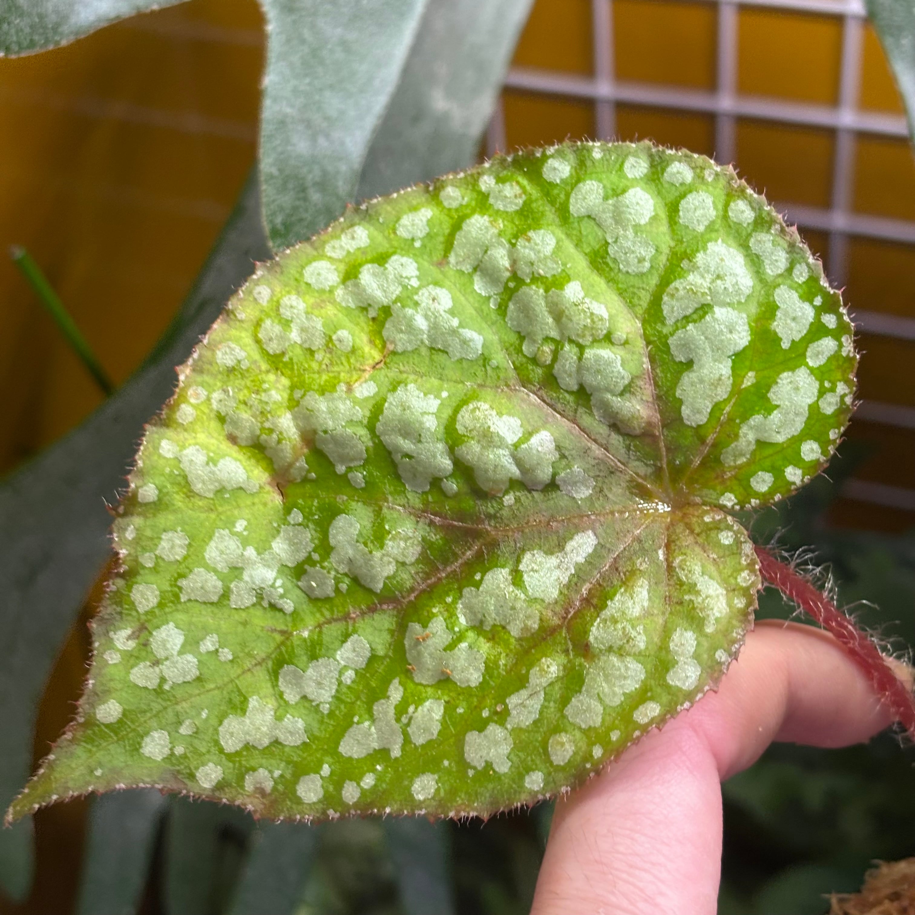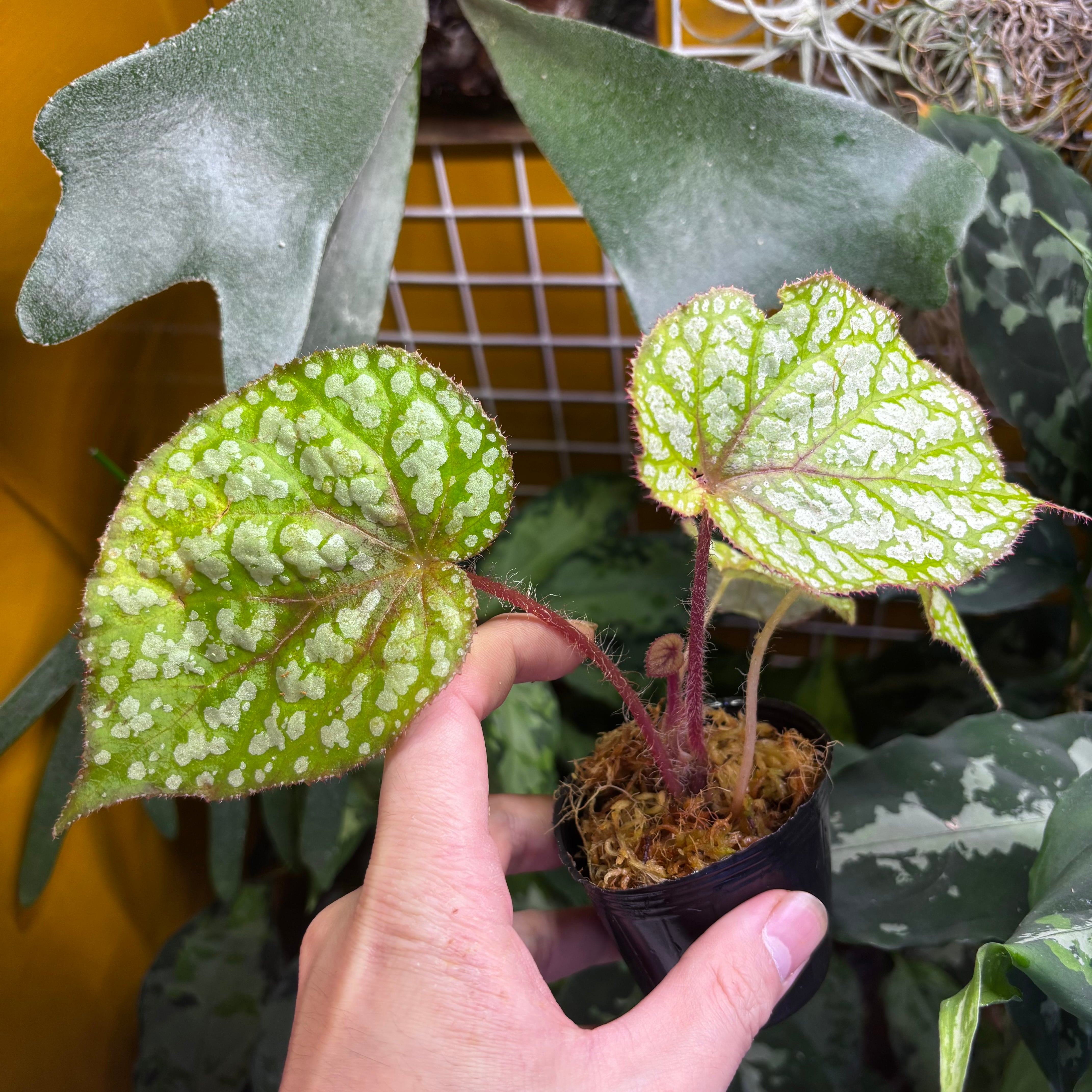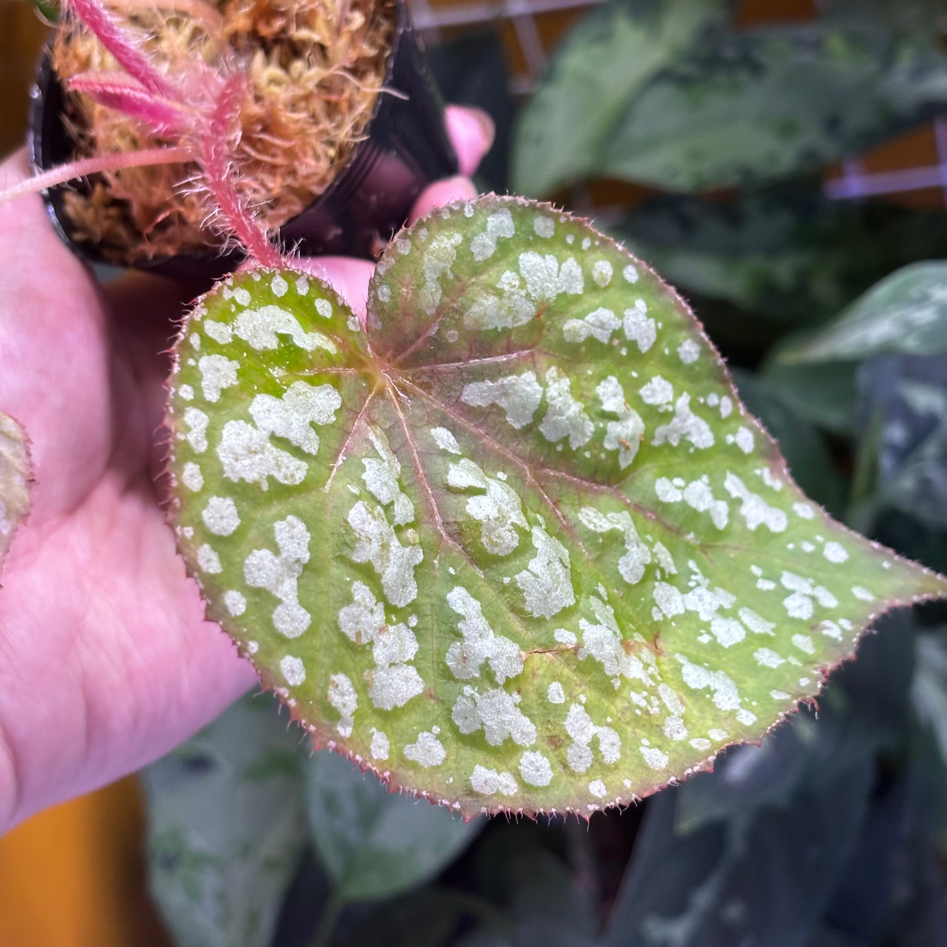 原種なのか交配種なのかは不明ですが、ライトグリーンと白の模様が非常に映える美しいベゴニアです。