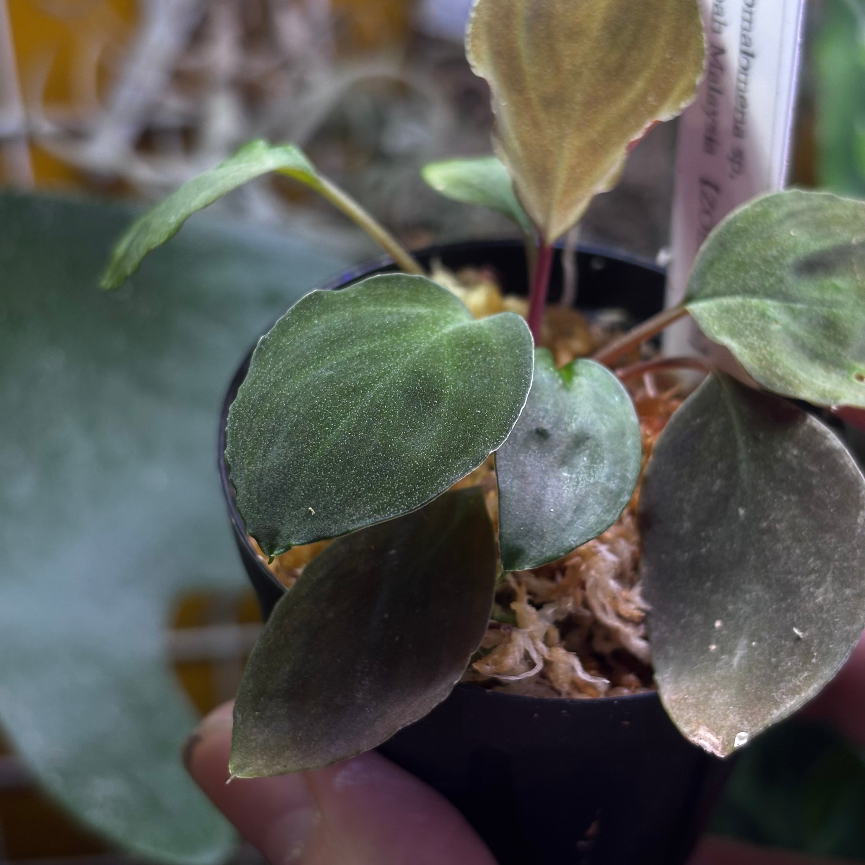 小型のホマロメナで、葉の表に細かなラメが見る角度でキラキラと光るほど非常に綺麗に現れます。