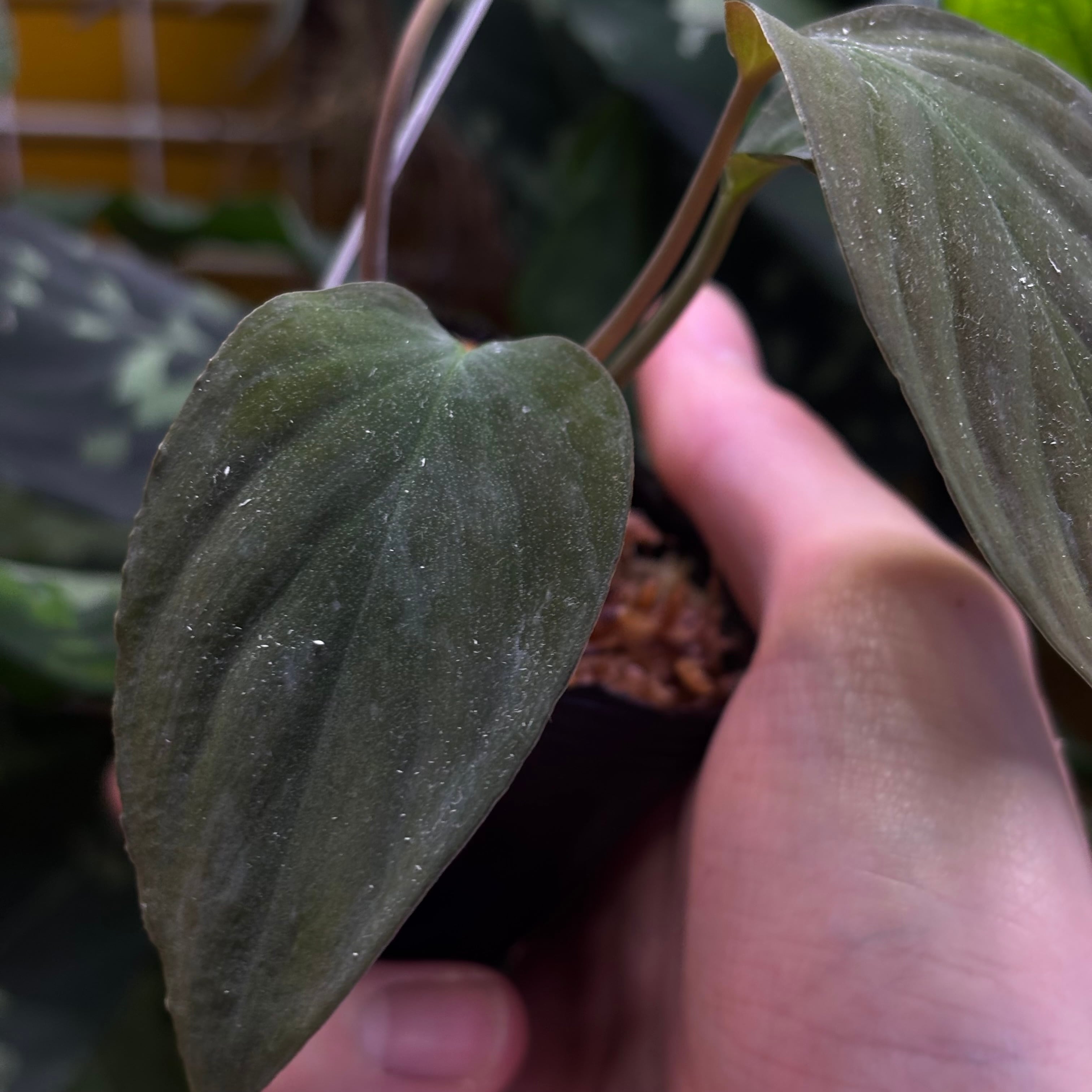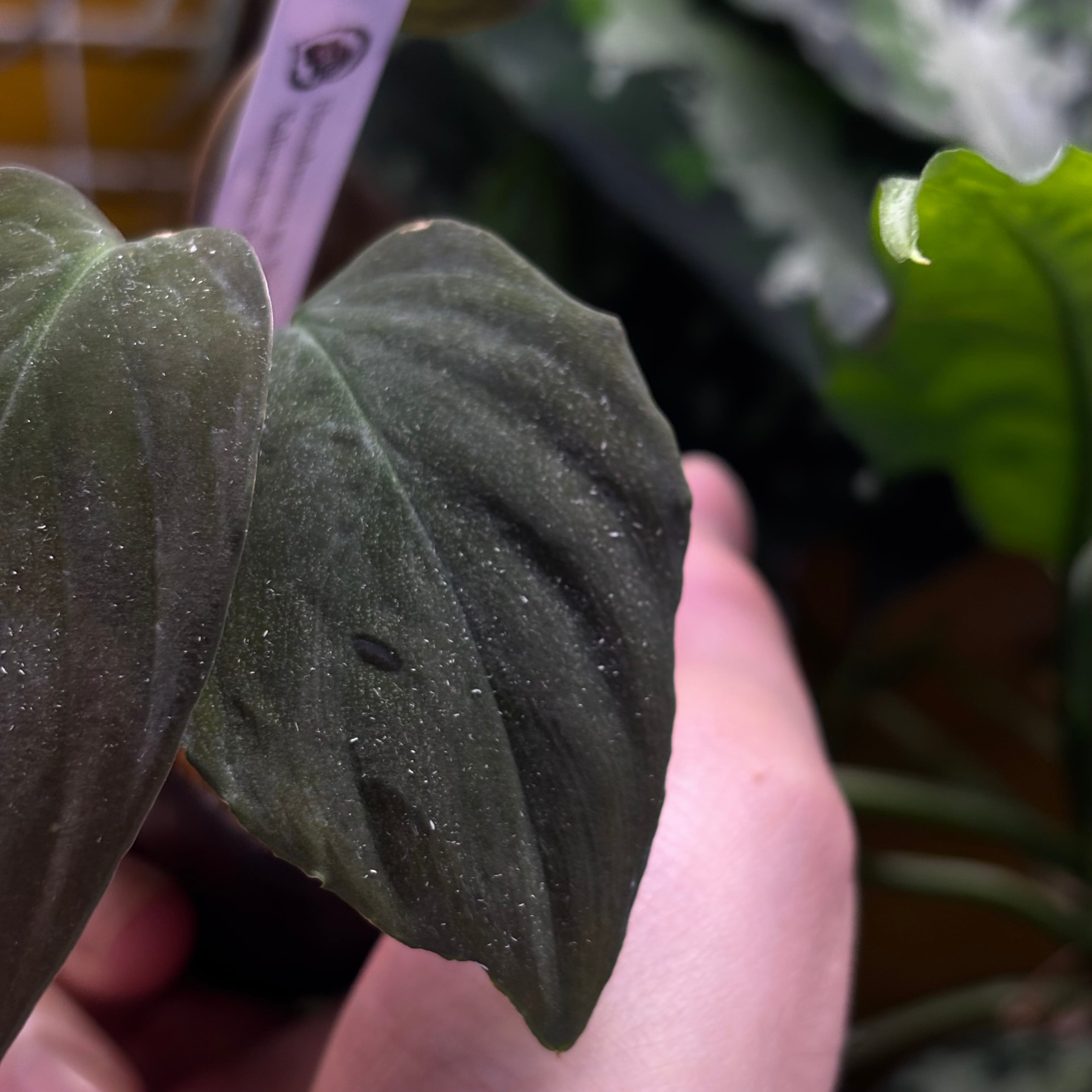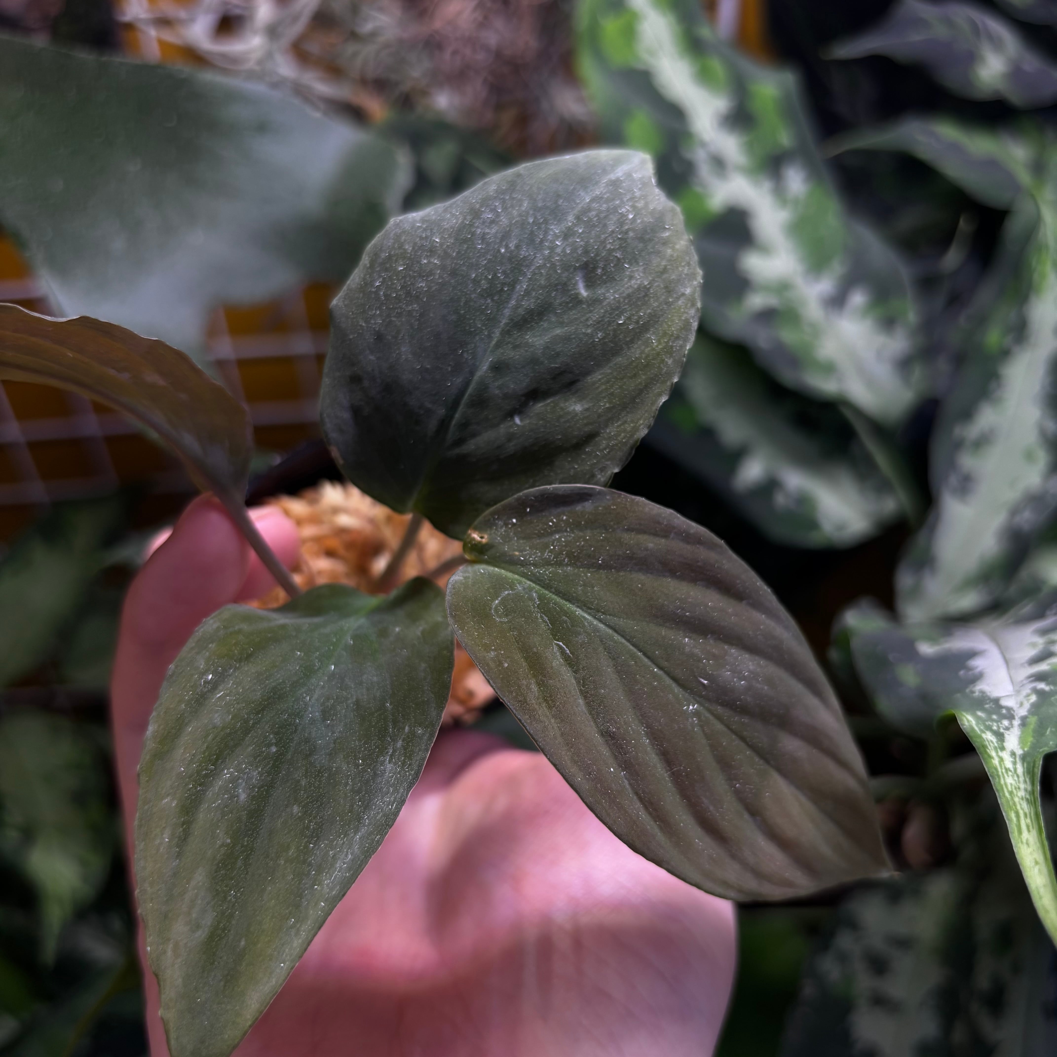 黒葉で、強い天鵞絨が特徴です。こちらは①と比べて葉が丸くウェーブもなく輪郭もスラッとしています。
