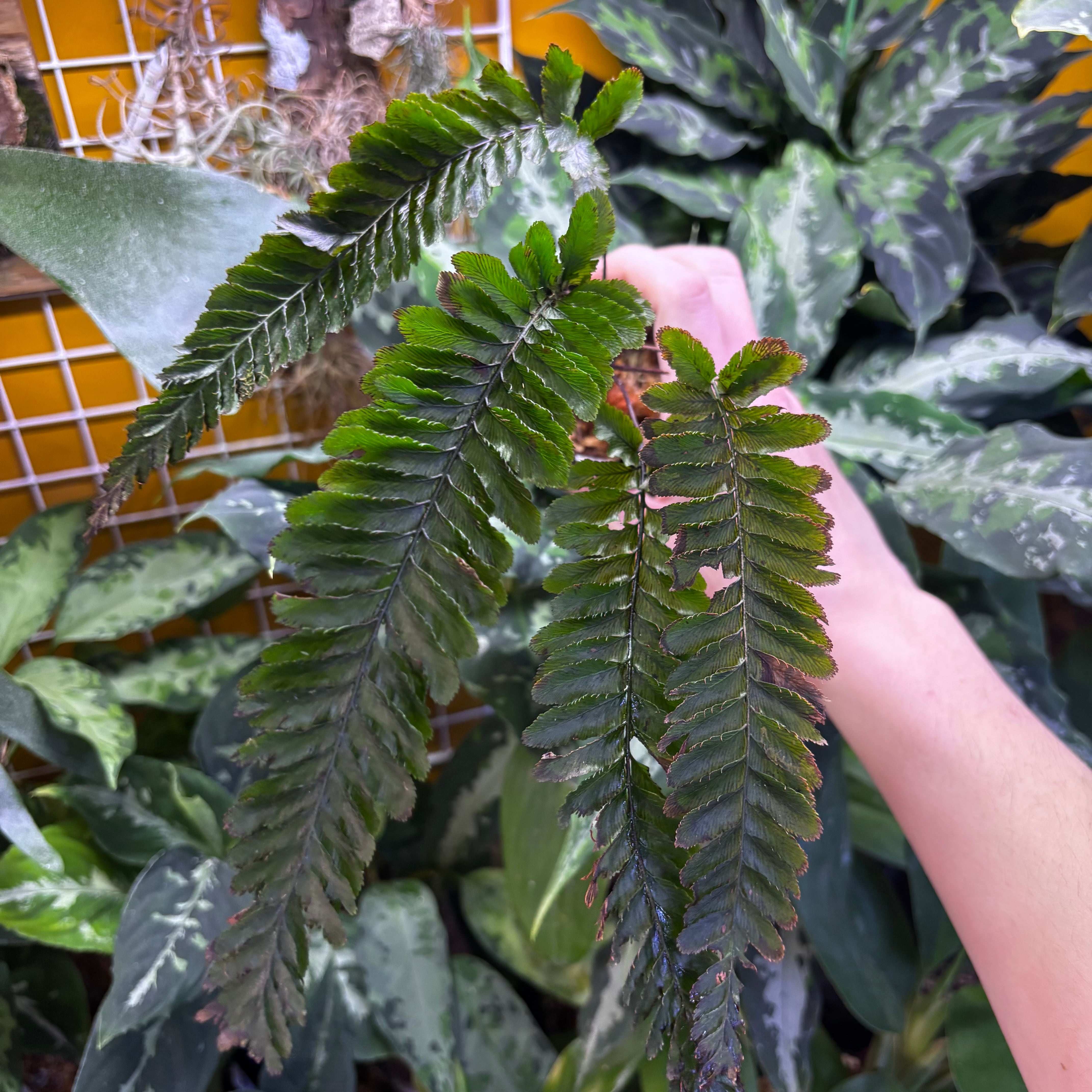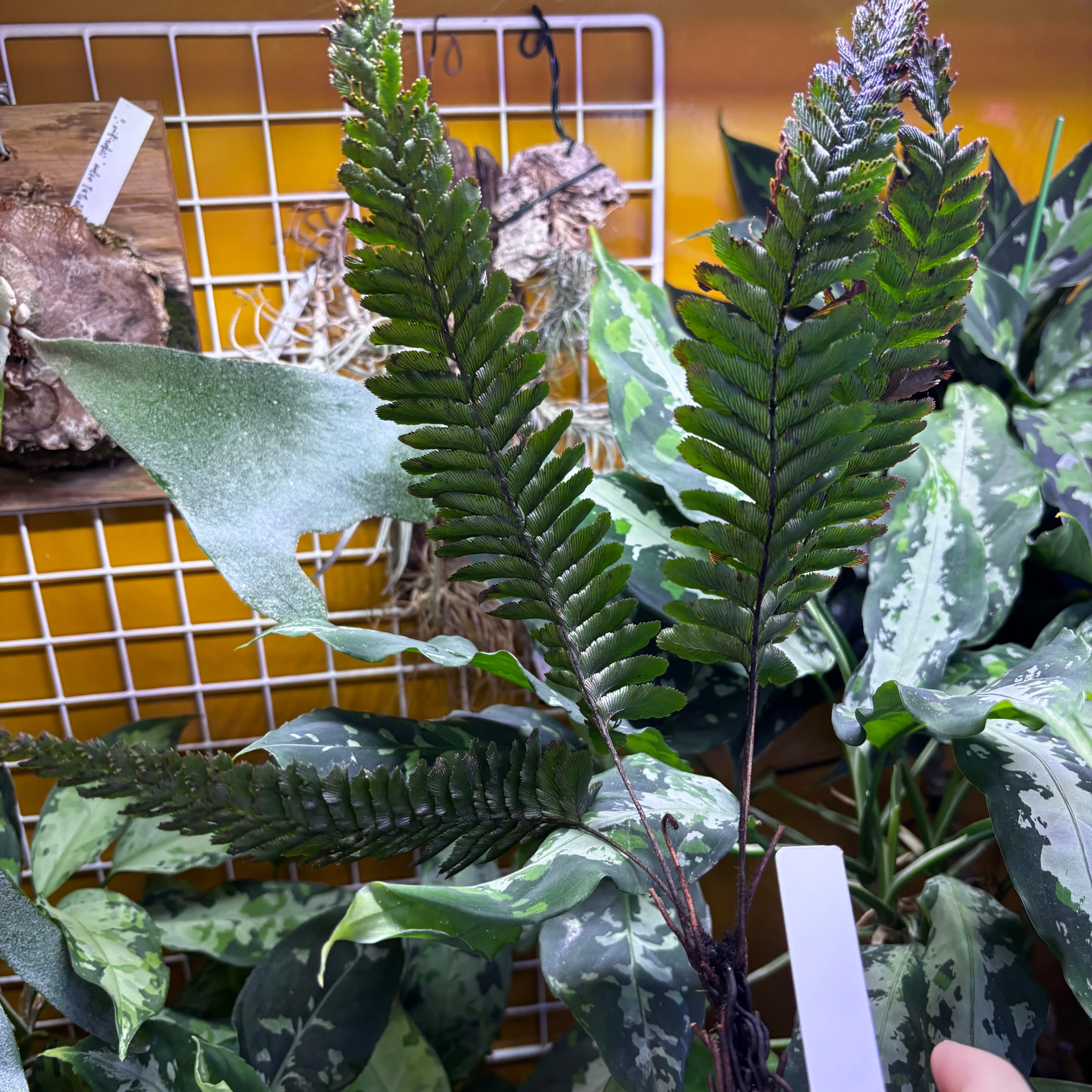 かなり大型のトリコマネスです。これまで輸入していたものと同じ?とは思いましたが、明らかにデカすぎるのと、胞子のつき方が異なるようで別種のようです。葉が半透明で綺麗です。根っこが折り重なって幹立ちします。