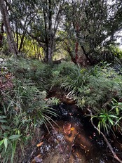 渓流沿いに生える細葉のヤブレガサウラボシです。大きな株が川沿いに大群生していました。