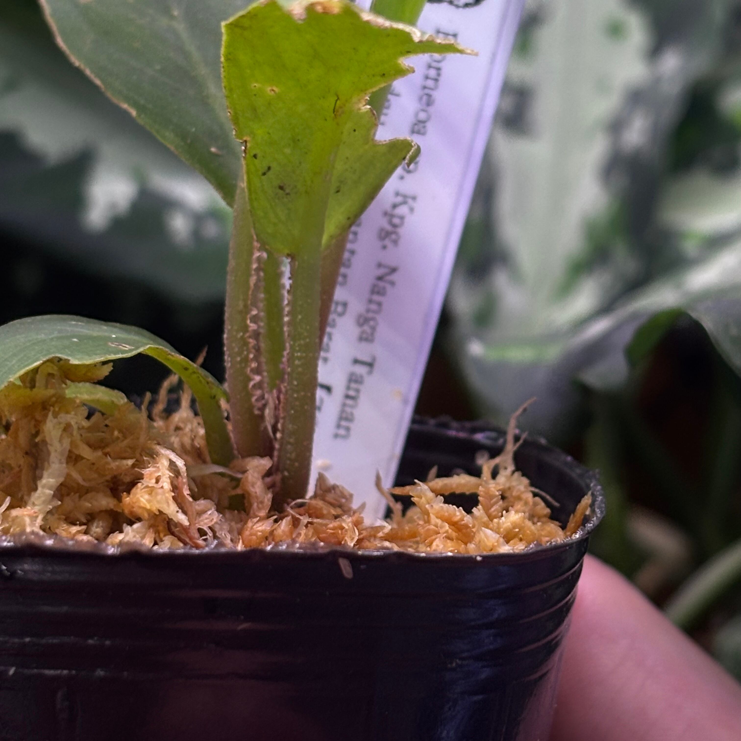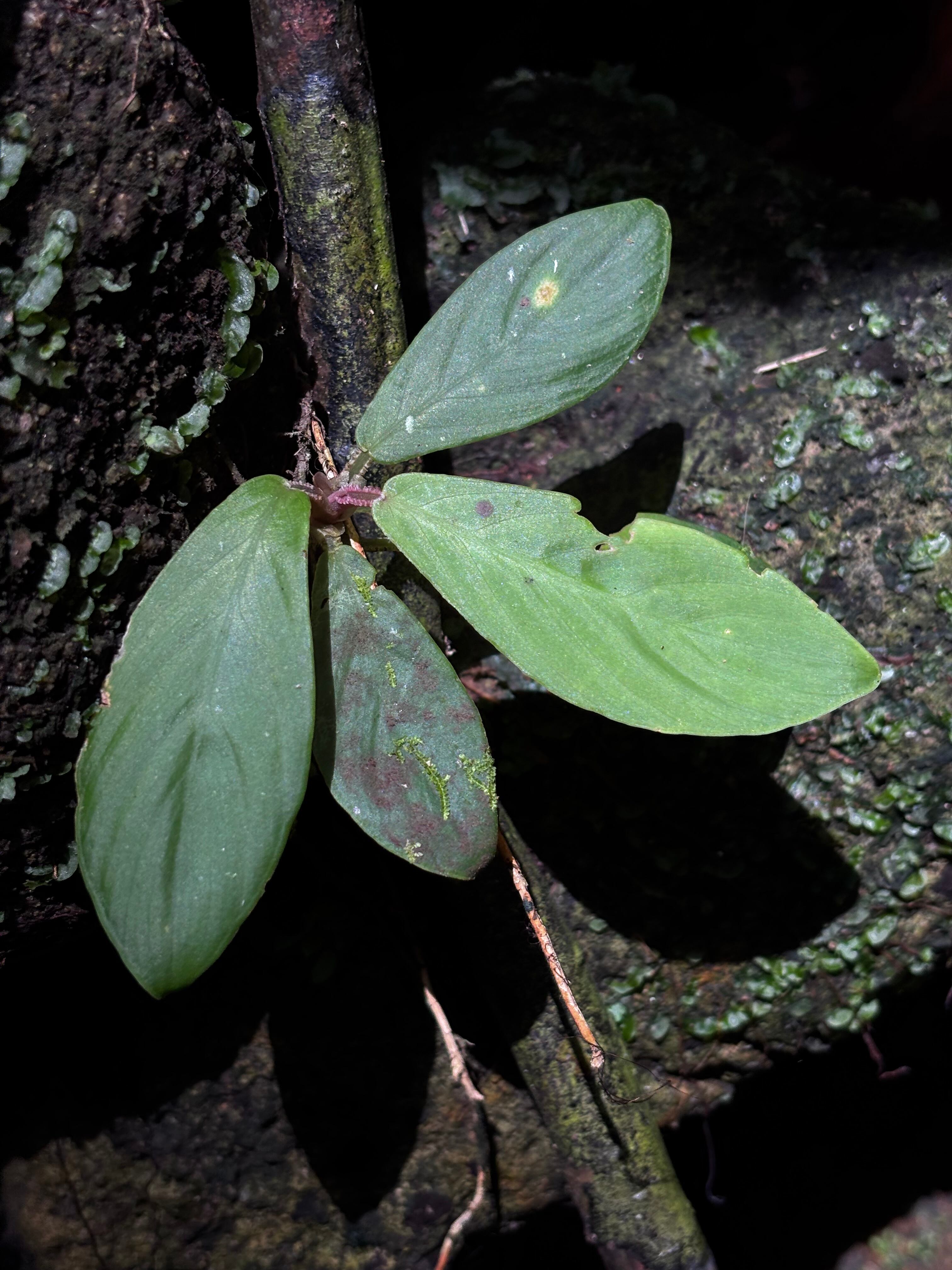 渓流から少し陸に上がった場所に自生していました。パッと見はペタホマ系に見えましたが、ペタホマ系はスマトラやリアウ辺りのイメージがあったので何か違うなと思い調べるとボルネオアのようです。
