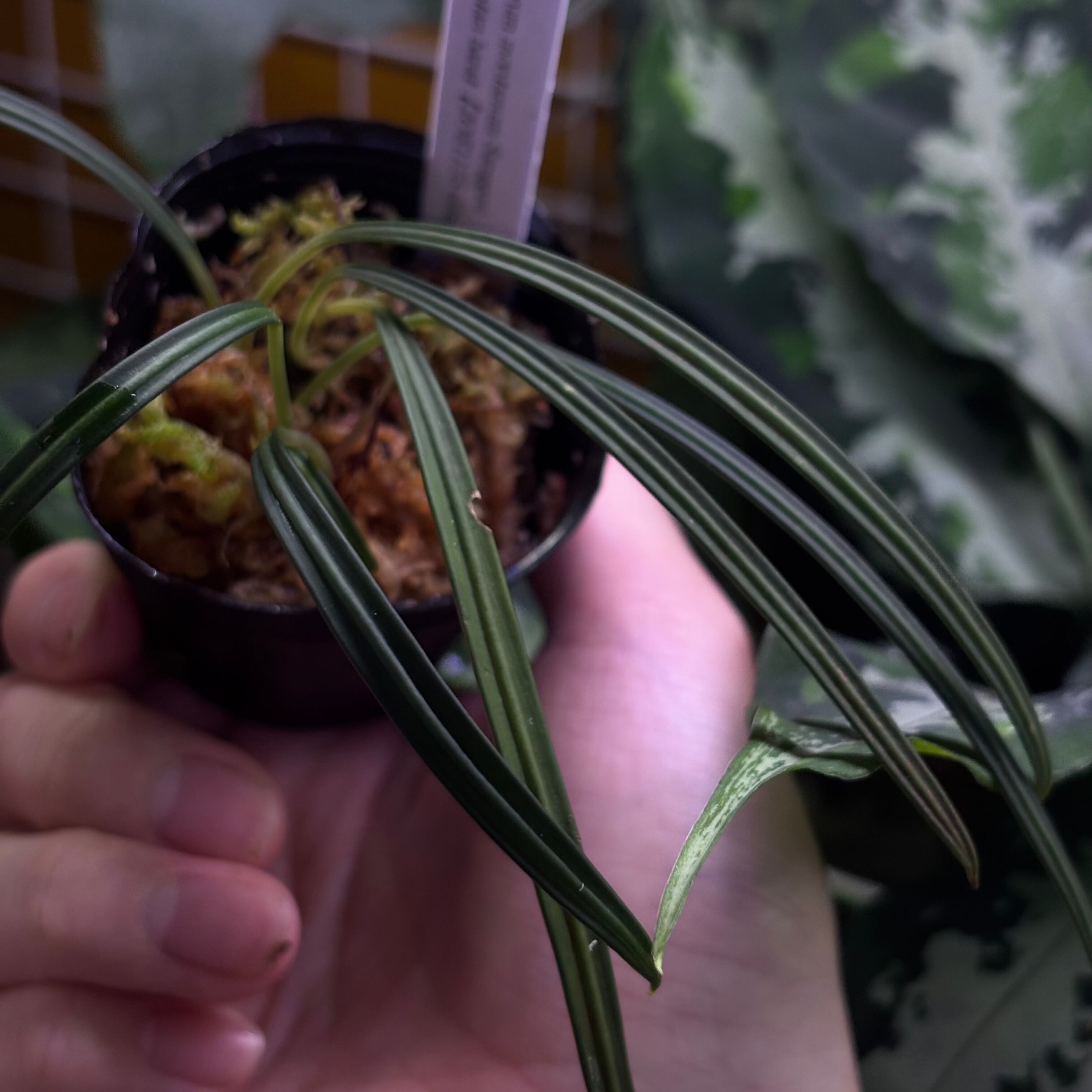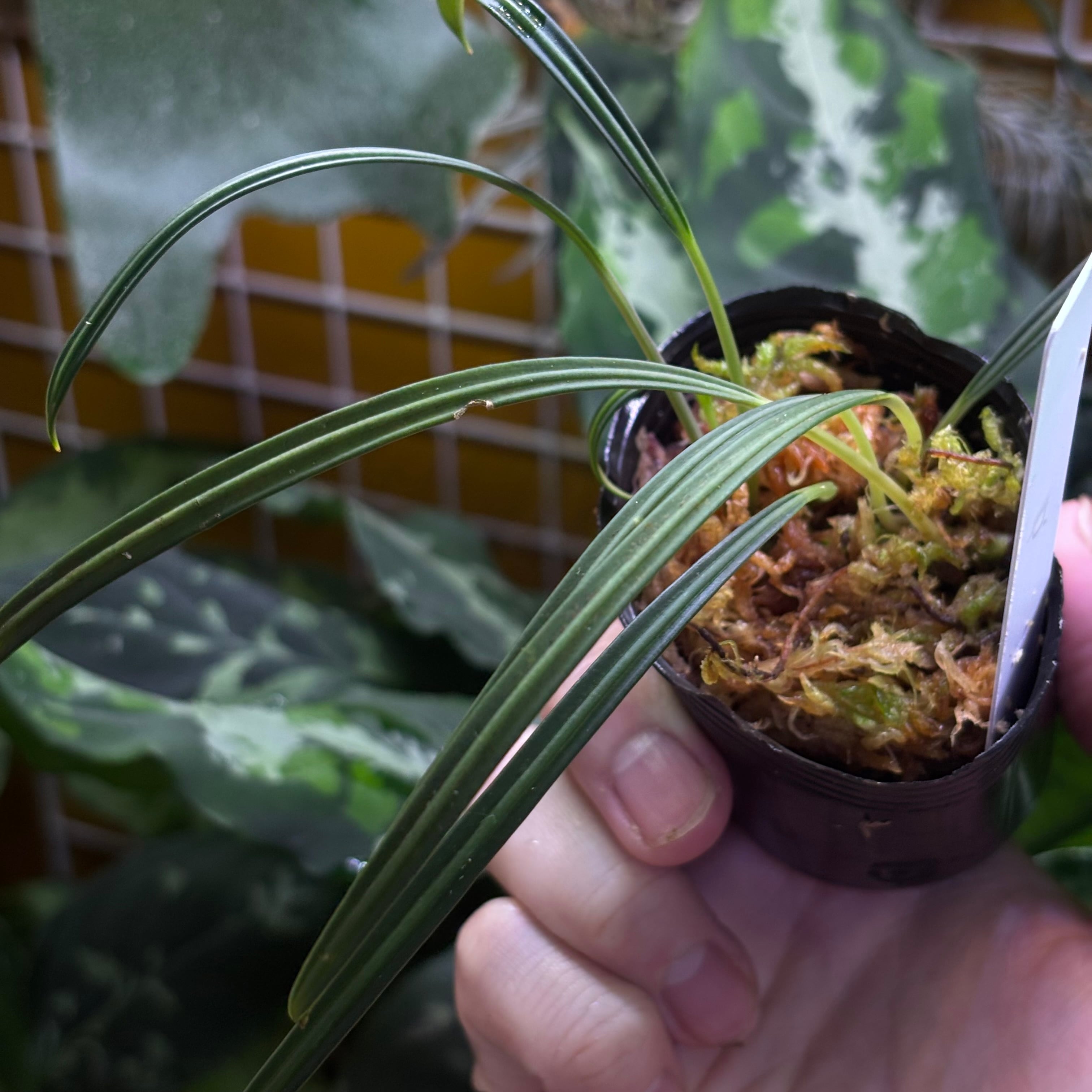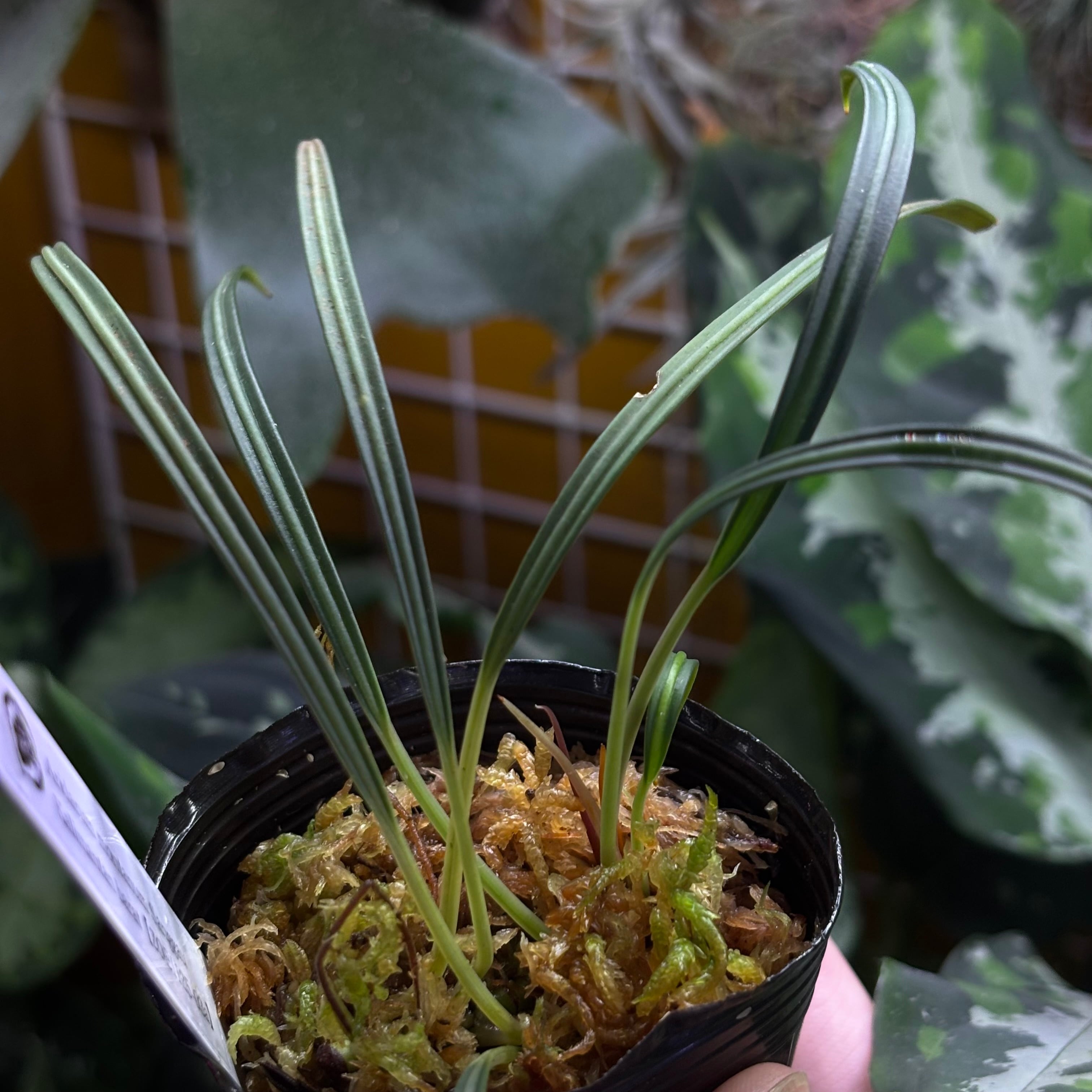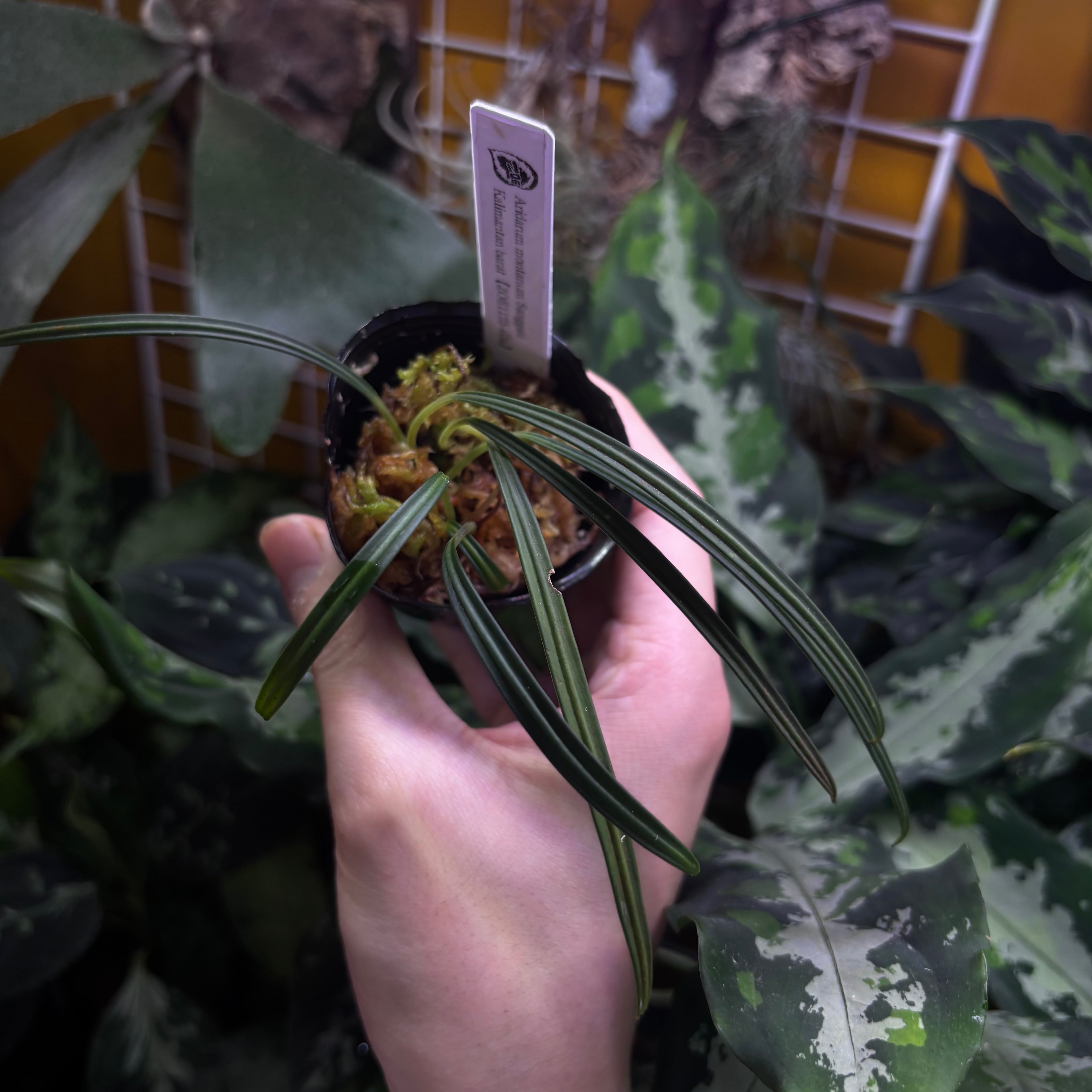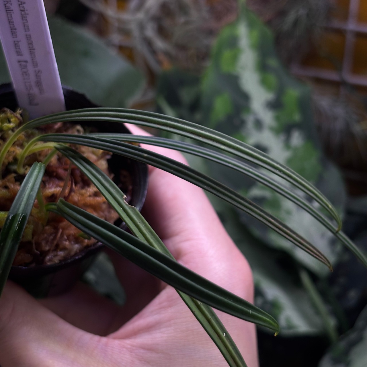 非常に細長い葉を持つアリダルム。新芽付近がほんのり赤く染まるのが綺麗です。芋が付いたしっかりとした株です。