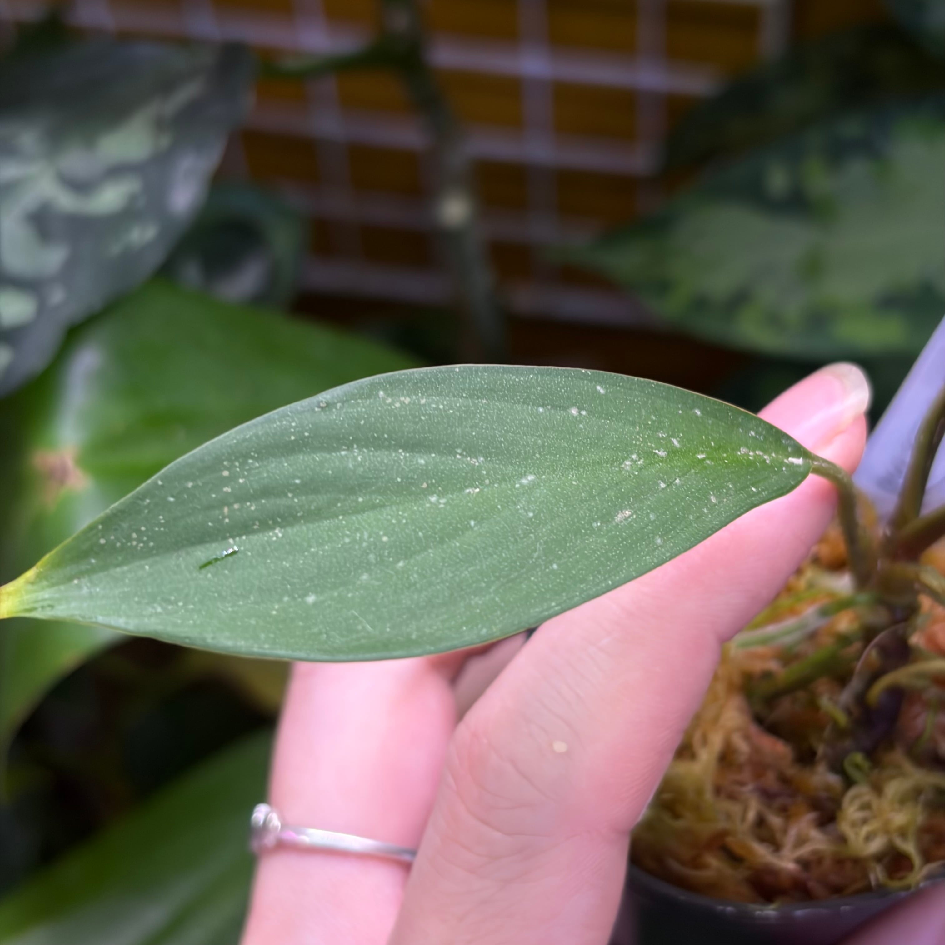 渓流沿いに生えるやや大型のホマロメナです。葉が長細くサジ型で、垂れるように育ちます。