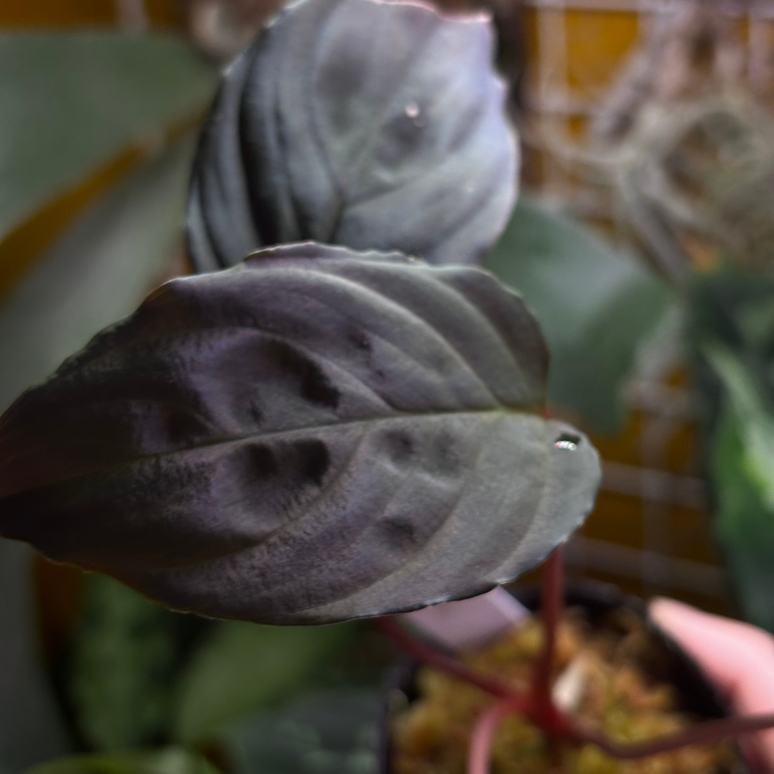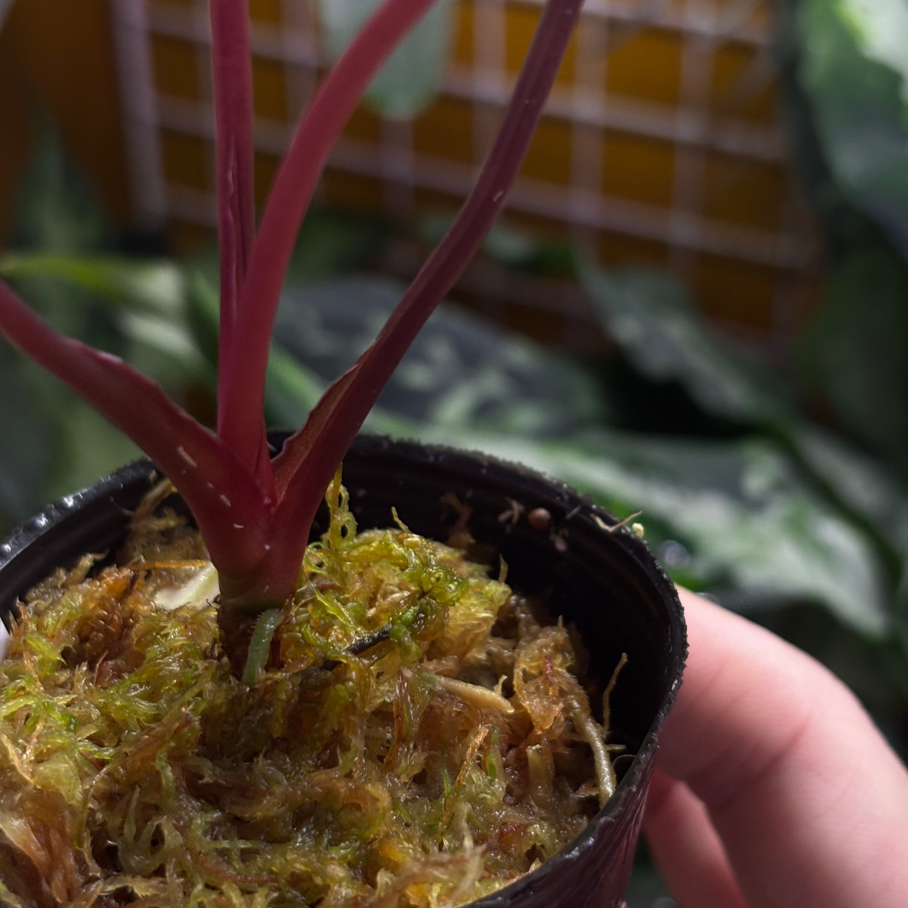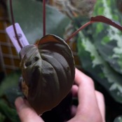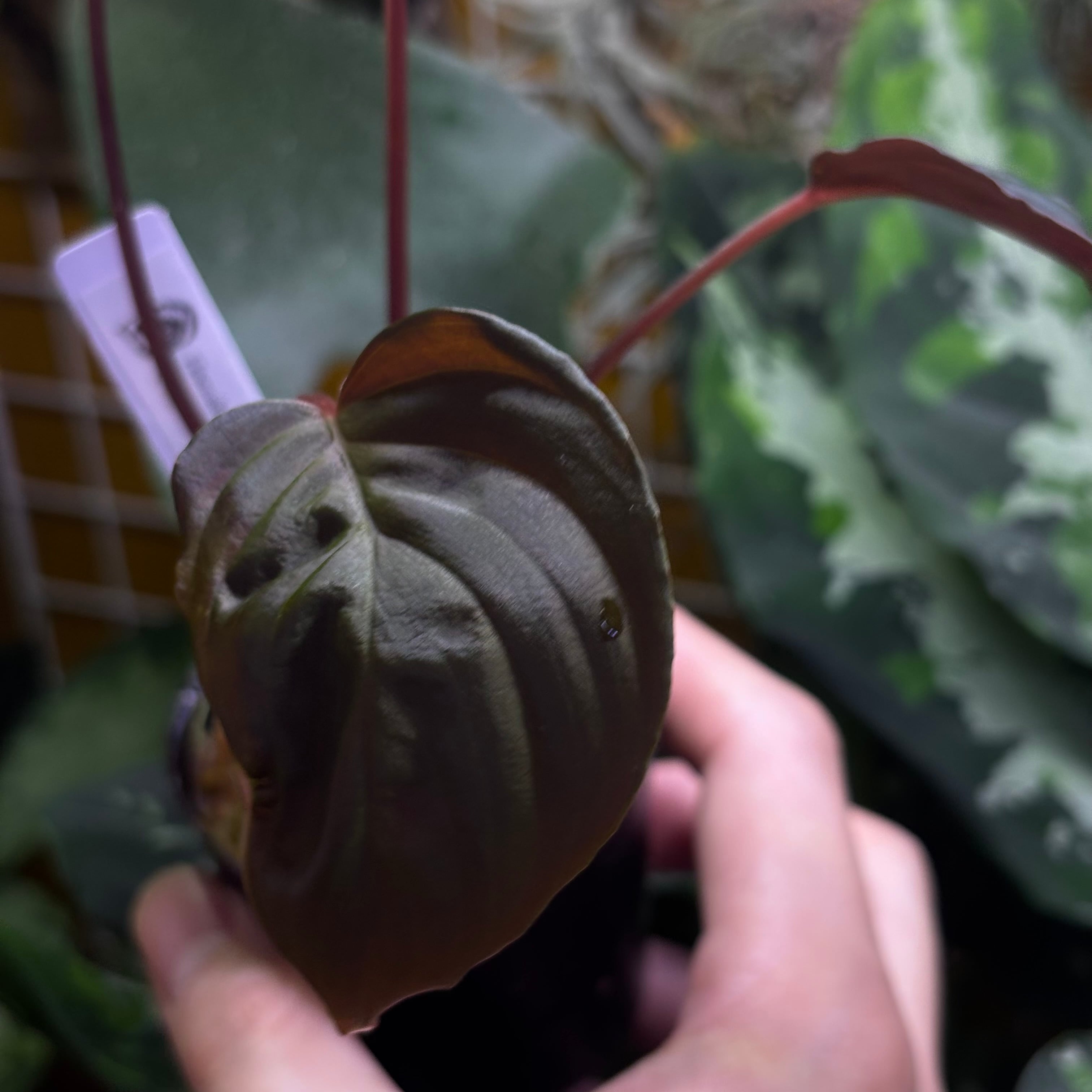 茎が赤く天鵞絨のある黒葉のホマロメナ。