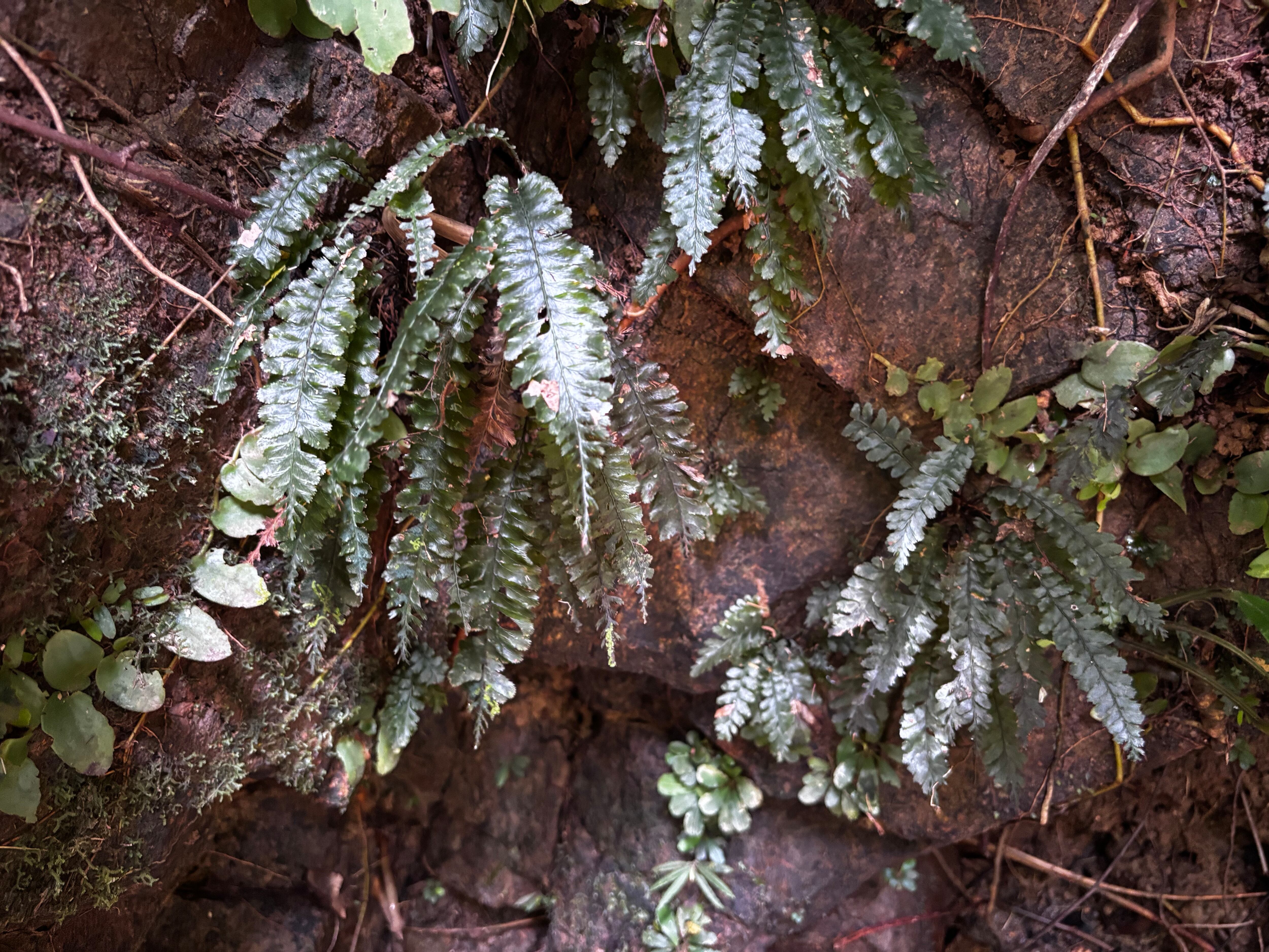 半透明の葉が美しいコケシノブの仲間です。渓流沿いのかなり湿度が高い場所に生えていました。