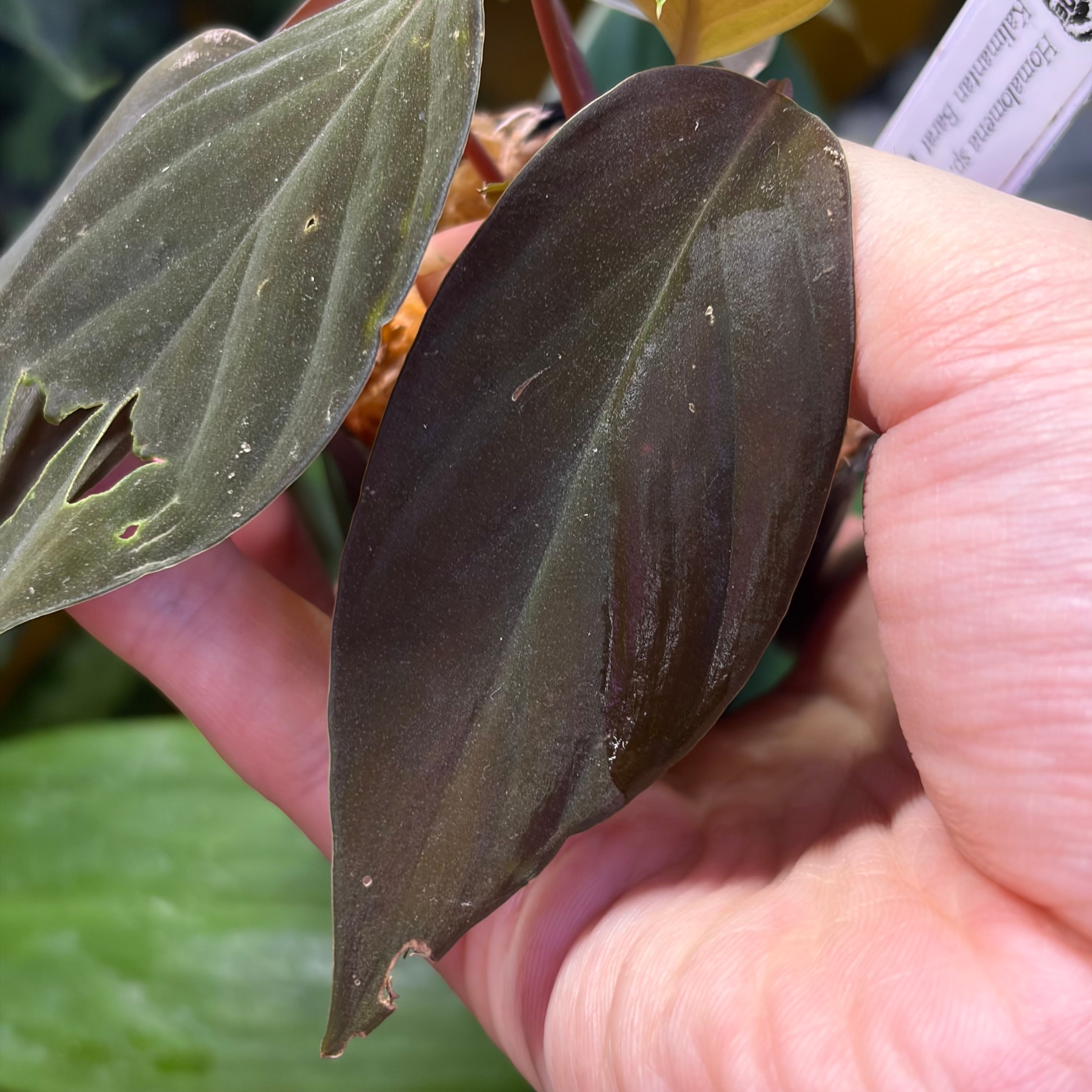 天鵞絨のある黒葉のホマで、葉柄が長く葉が垂れ下がります。